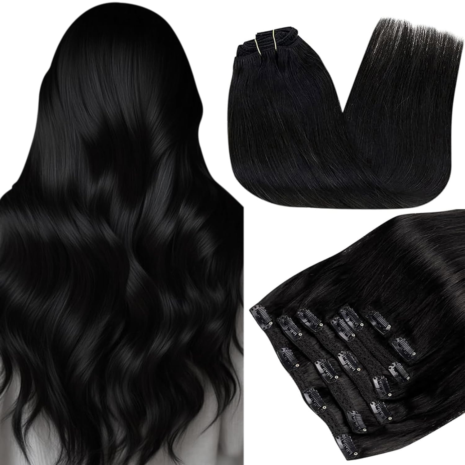 - 5.Haargewicht: 120 Gramm, normalerweise reicht 1 Packung für mehr Volumen und 2 Packungen für mehr Länge. Bitte beachten Sie, dass die Haare mit zunehmender Länge dünner werden. 120g CLIP EXTENSIONS besteht aus 105g Menschenhaar und 15g Clip