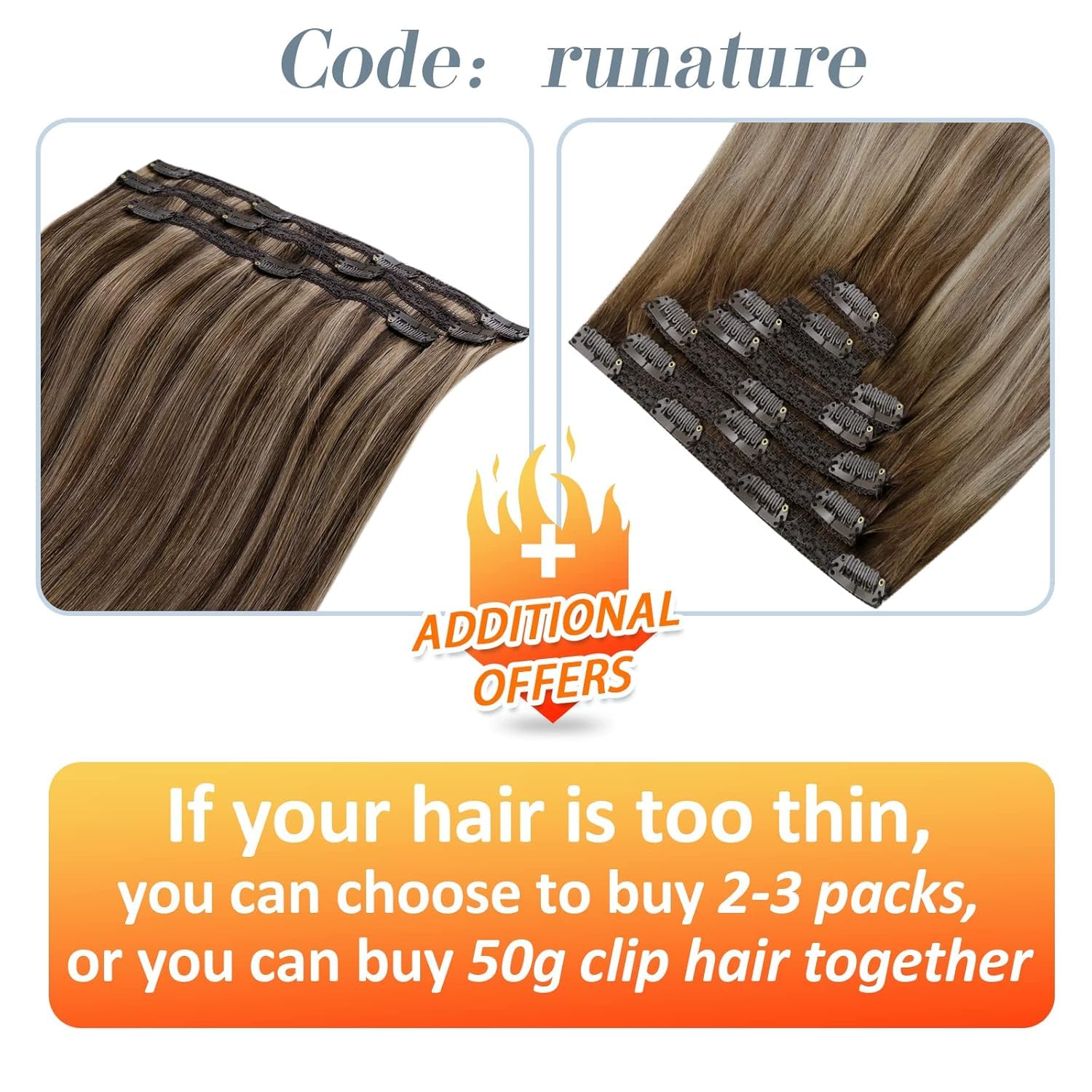 - 3.RUNATURE Clip in Extensions sind stabil genäht, mit einer Schicht aus weichem Gummi bedeckt, um Ihre Kopfhaut und Ihr Haar sorgfältig zu schützen. Sie können die Clip-On-Haarverlängerungen in 5 Minuten selbst anbringen und entfernen. Einfach mit