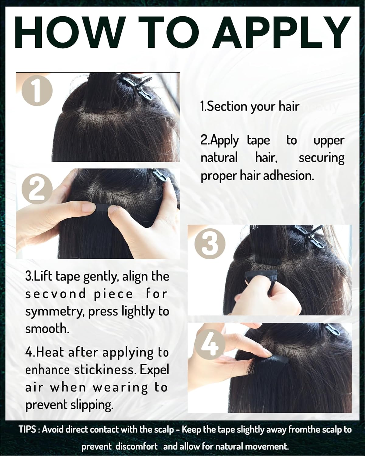 - Tape in extensions echthaar importierten verbesserten weissen kleber, um unsichtbarkeit zu gewährleisten,und jede packung haare kommt mit ersatzbändern, die einfach zu bedienen sind und wiederverwendet werden können