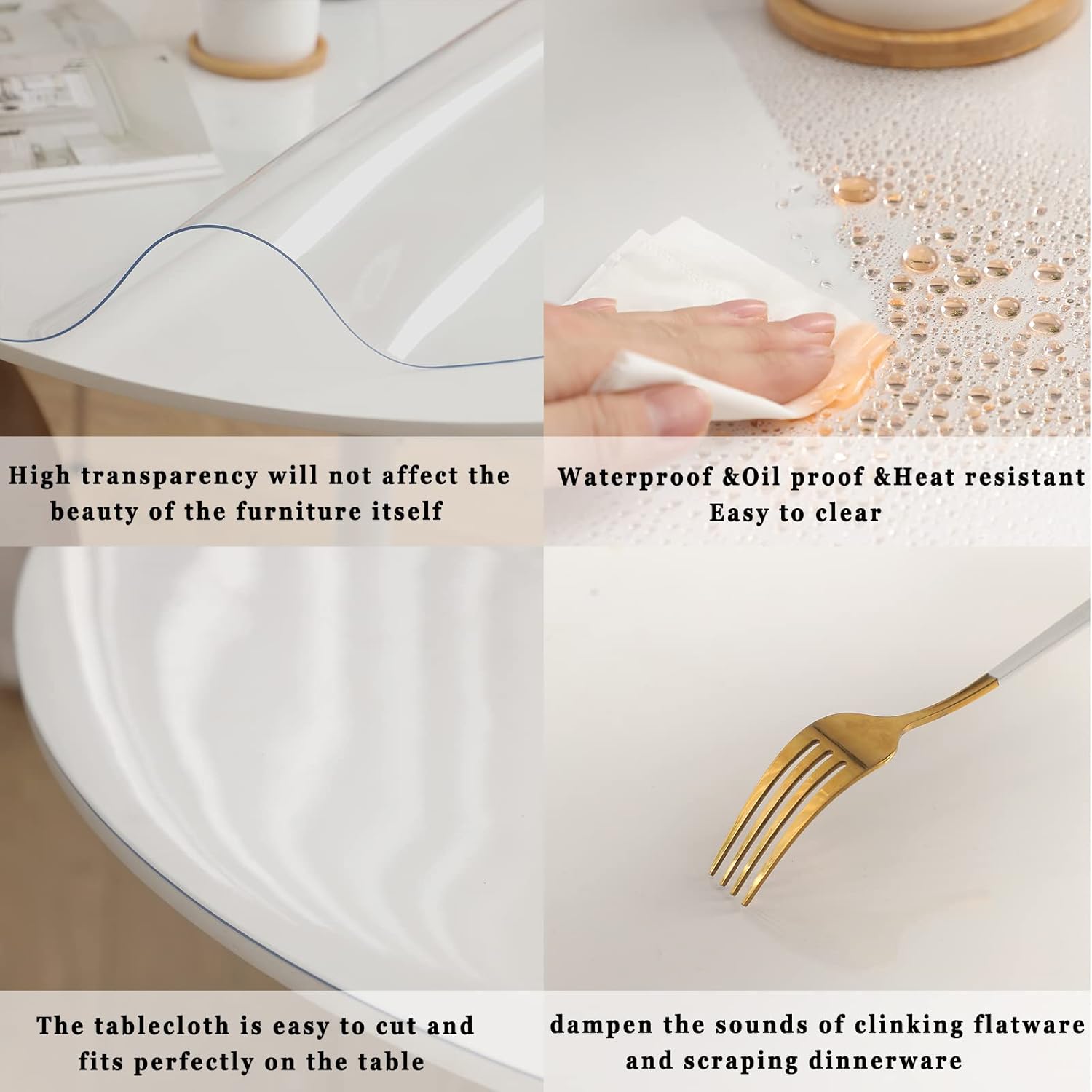 • 【THICK GENUG】1.5mm/2.0mm dicke klare runde Tischpads Abdeckung ist schwer genug, um in Ihrem Tisch zu bleiben. Die 2.0mm dicke Tischmatte wird für den Küche- und Esszimmer-Tisch empfohlen, der bessere Hitzebeständigkeit hat. Für Glas, Marmor oder