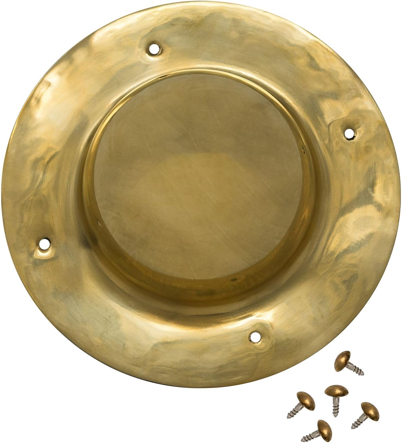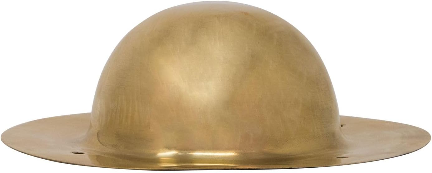 PRODUKTBESCHREIBUNGEN Runder Römischer Schildbuckel, Umbo aus Messing Ideal für eigene Schildbau-Projekte. Schildbuckel dienten sowohl der Abwehr bzw. Ablenkung von feindlichen Schlägen als auch der Aufnahme des Schildgriffes. Aber neben ihrer praktischen Funktion hatten sie in manchen Fällen auch einen dekorativen Zweck. Der runde Schildbuckel (sog. Umbo), den wir hier anbieten, ist das optimale Zubehör für den anspruchsvollen Re-enactor, der seinen Römerschild selbst bauen möchte. Er ist ideal für eine Parma, eignet sich aber auch für ein Scutum (bitte beachten, dass der Buckel nicht vorgebogen ist; bei Montage an einem gewölbten Schild sollte er vor dem Zusammenbau der Schildwölbung angepasst werden). Der Schildbuckel ist aus Messing gefertigt, innenseitig geschwärzt und mit vier Löchern vorgebohrt. Das Befestigungsmaterial (Schrauben mit runden Messingköpfen) ist im Lieferumfang enthalten. Technische Daten Material: Messing Durchmesser: ca. 20 cm Durchmesser der Wölbung: ca. 12 cm Tiefe der Wölbung: ca. 6.5 cm Gewicht: ca. 230 Gramm Die o.g. Spezifikationen können von Exemplar zu Exemplar leicht variieren. Mehr