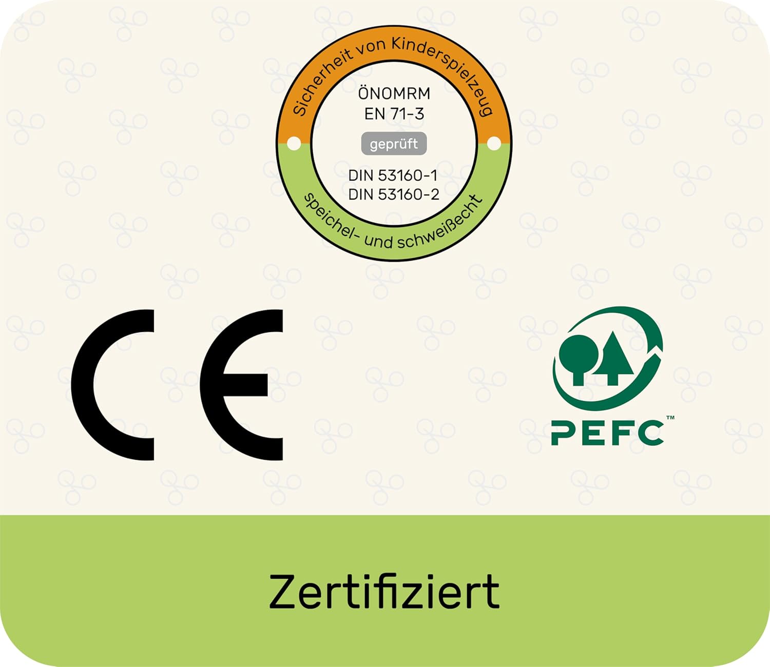 - 🌱 Nachhaltig & zertifiziert. Unser Holzspielzeug ist PEFC-zertifiziert, CE-konform und entspricht strengen Normen wie ÖNORM EN 71-3, DIN 53160-1 & 2. Frei von Schadstoffen, speichelfest und langlebig – für sicheres Spielen ab 2 Jahren.