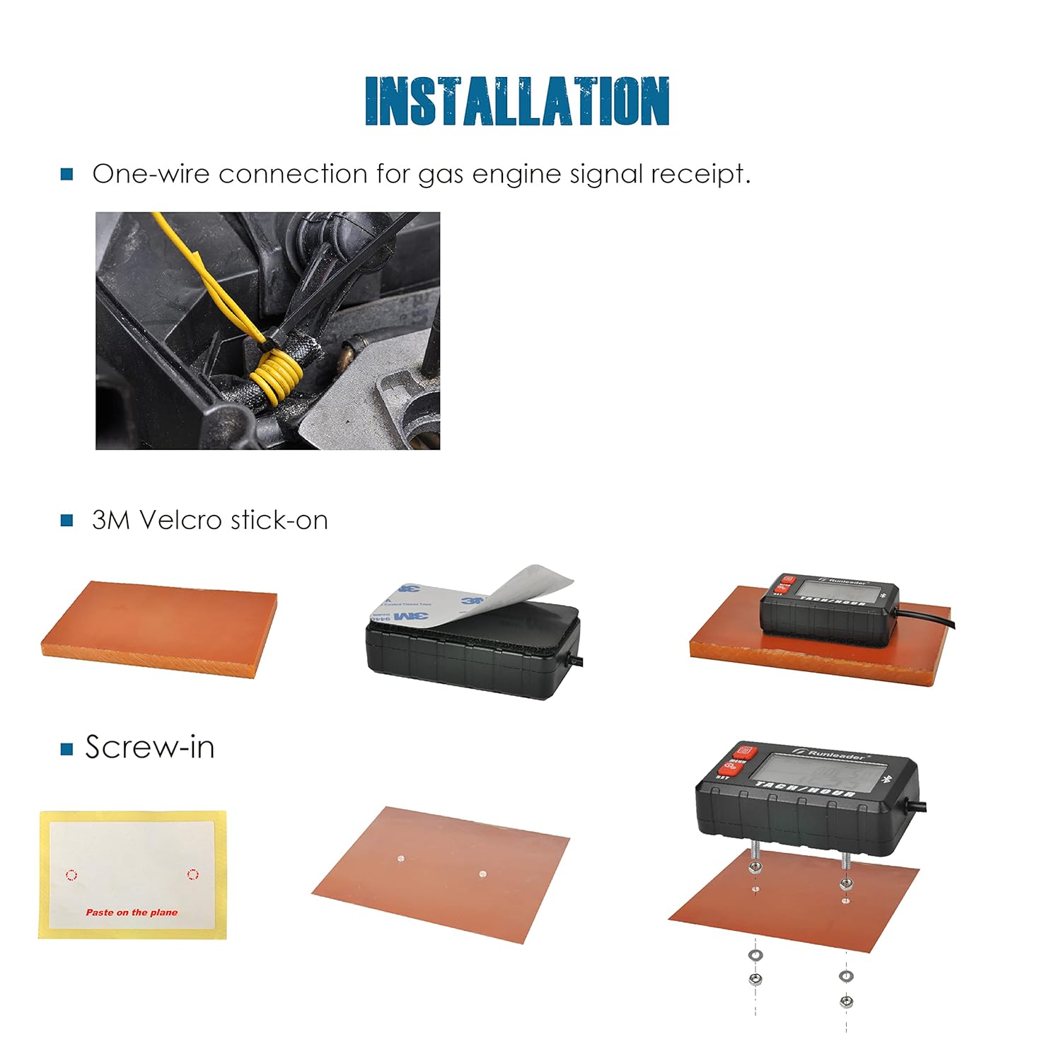 - ANDERE FUNKTIONEN ---- Einfach an jedem richtigen Ort durch Aufkleben, Anschrauben; Eine Drahtverbindung für Motorsignalempfang, detaillierte Verbindungsanleitung für buletooth / APP "Moresee" zu montieren; Eingebaute austauschbare Batterie CR2450 für