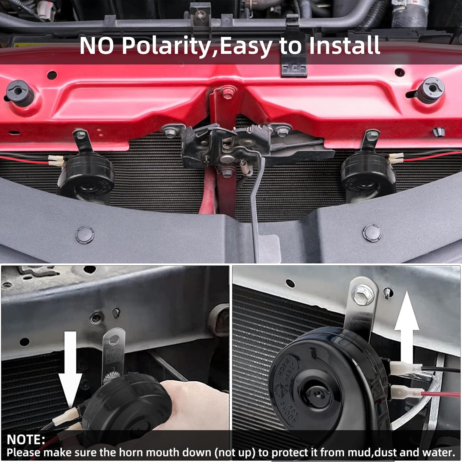 • Hochwertiges Material - Das 12-V-Horn hat eine hohe feste Montagehalterung, eine Spiralspule aus reinem Kupfer, eine Hülle aus technischem ABS-Kunststoff und eine superlaute Membran. Kommen Sie mit ausgezeichnetem Material, wissenschaftliches Design
