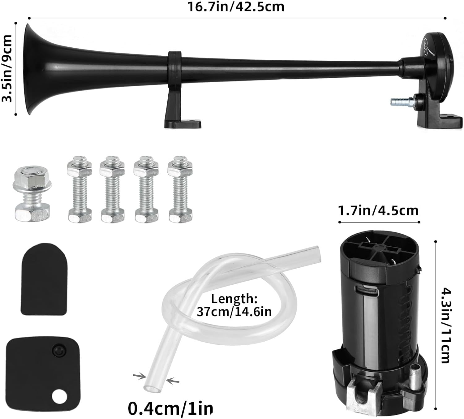 - 【Super laute Autohupe】150 dB Lautstärke hupe,die Ihnen einen lauten und klaren Ton gibt, um andere zu warnen, und ein gewisses Mass an Sicherheit beim Fahren bietet.