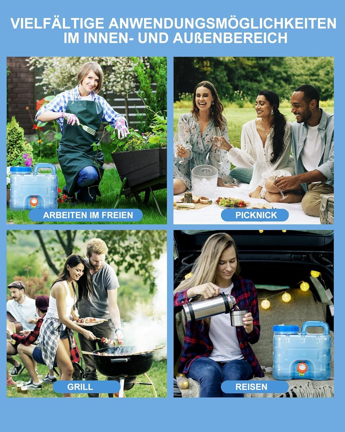 - ✔【Anwendungsbereich】Wassertank für Trinkwasser im Freien oder im Haushalt. Tragbar und leistungsstark, perfekt für Partys/Zuhause/Küche/Veranstaltungen/Grillabende. Es ist ein guter Helfer für das Leben im Freien wie Outdoor-Camping und