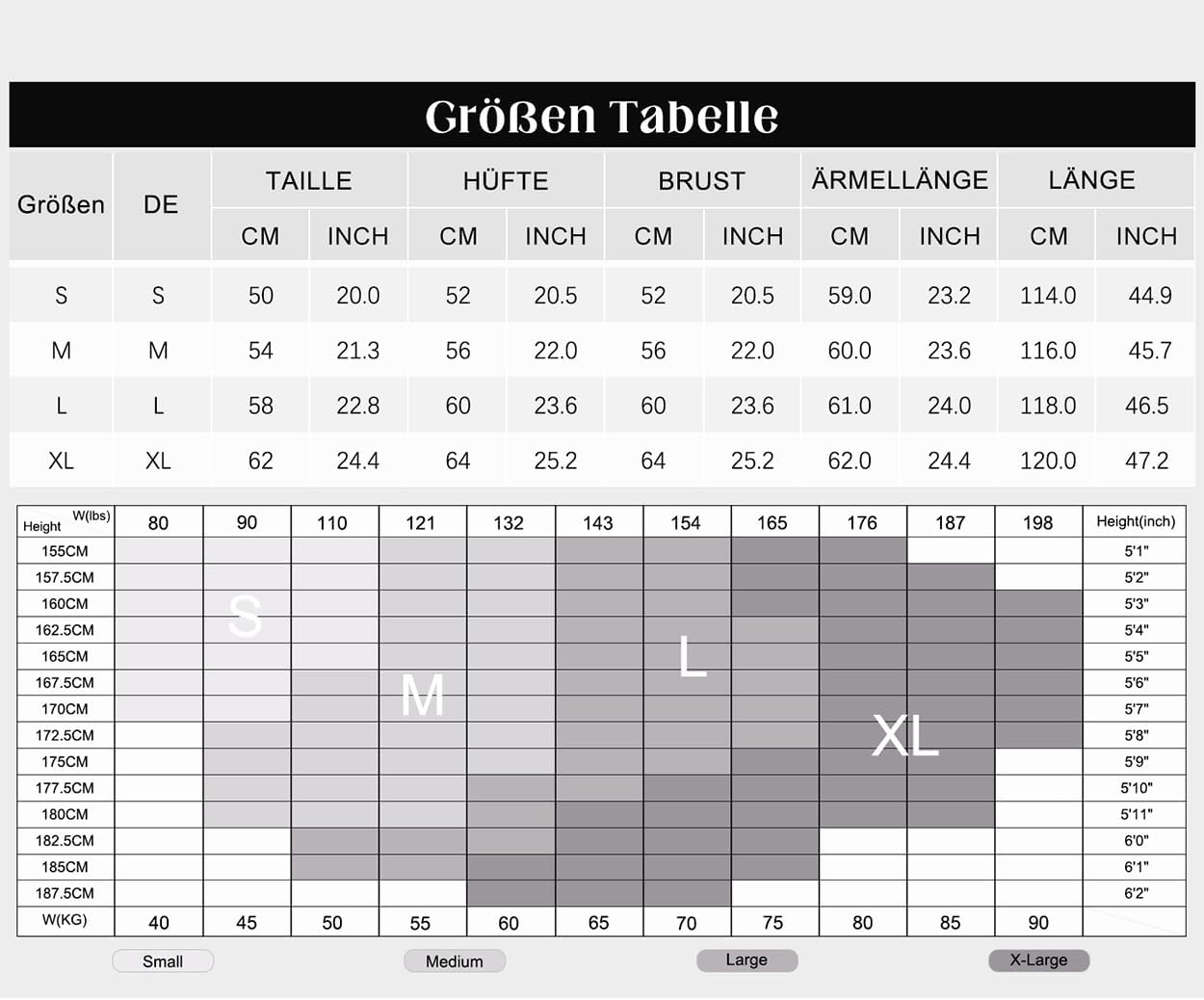 • Grösse:Wenn Sie mehr Komfort für den Alltag bevorzugen, wählen Sie bitte eine Nummer grösser.Bitte folgen Sie unserer Grössentabelle und messen Sie Ihre Oberweite, Taille und Hüfte.