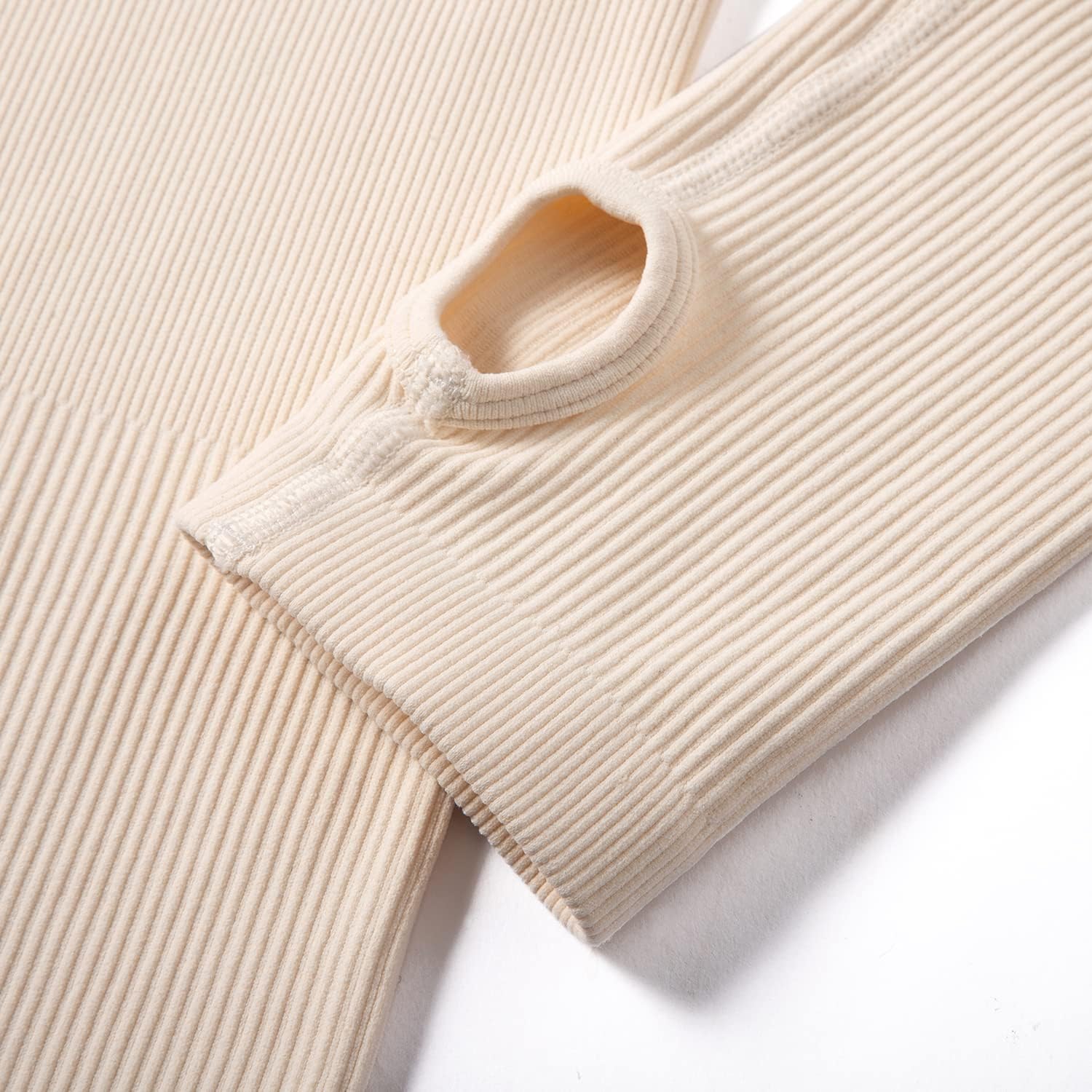 RXRXCOCO Gerippte Langarm Jumpsuits Damen Eng Square Neck Einteiler Bauchweg Sport Yoga Overall Romp