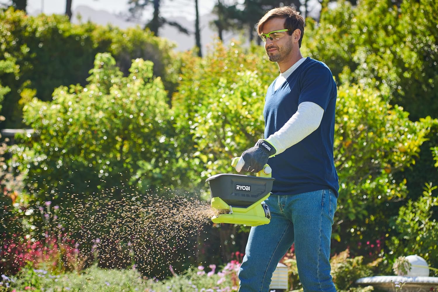 - Zum Ausbringen von trockenen Materialien wie z;B; Rasensamen oder Dünger