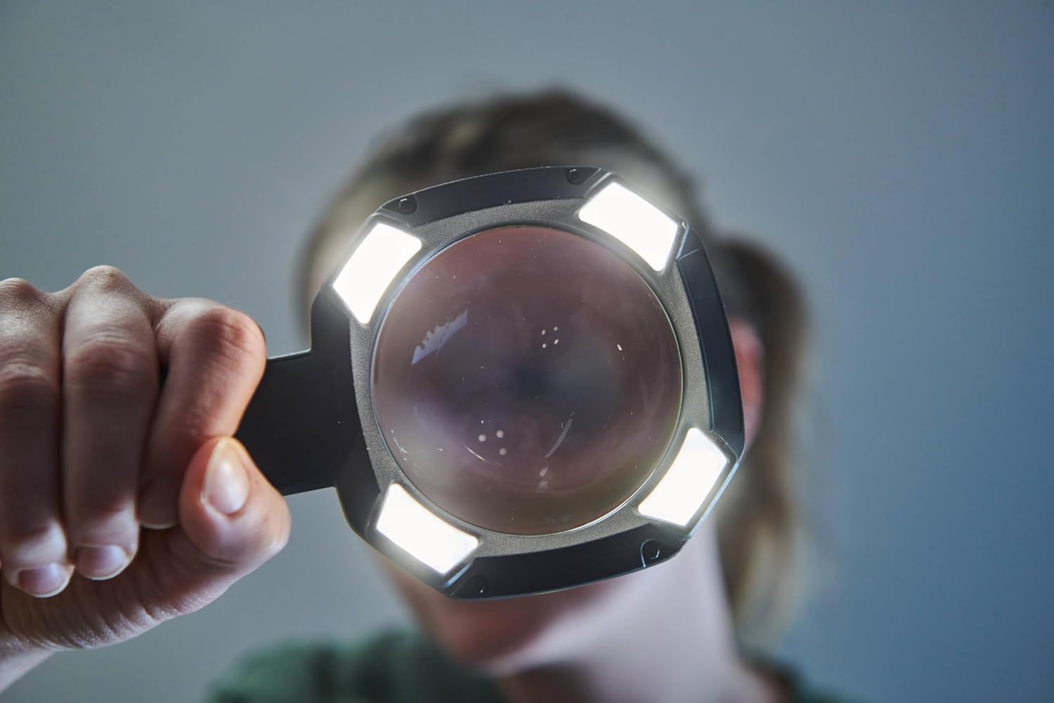 - Leistungsstarke Beleuchtung: Ausgestattet mit zwei Beleuchtungsstufen mit maximal 240 Lumen verbessert diese beleuchtete Lupe die Sichtbarkeit in dunklen Umgebungen, ideal für präzises Arbeiten bei verschiedenen Lichtverhältnissen.