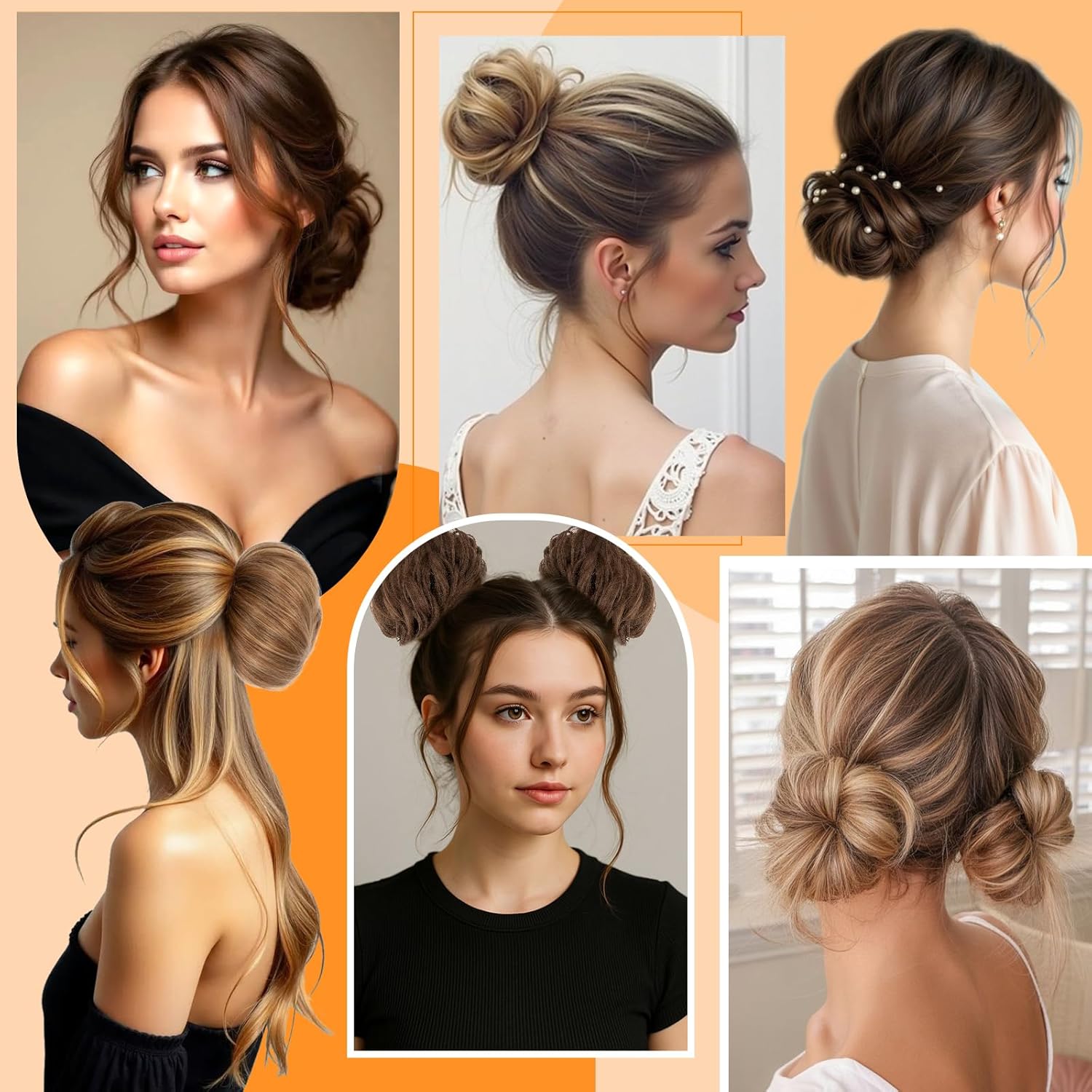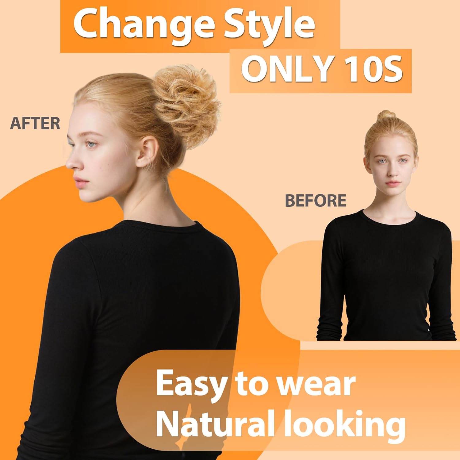 - Kreieren Sie im Handumdrehen eine neue Frisur, indem Sie Ihr Haar zu einem Pferdeschwanz oder Dutt binden und ein Messy Bun Haarteil darum wickeln. Diese Echthaarverlängerung fügt sich perfekt in Ihr Haar ein und sorgt für einen natürlichen,