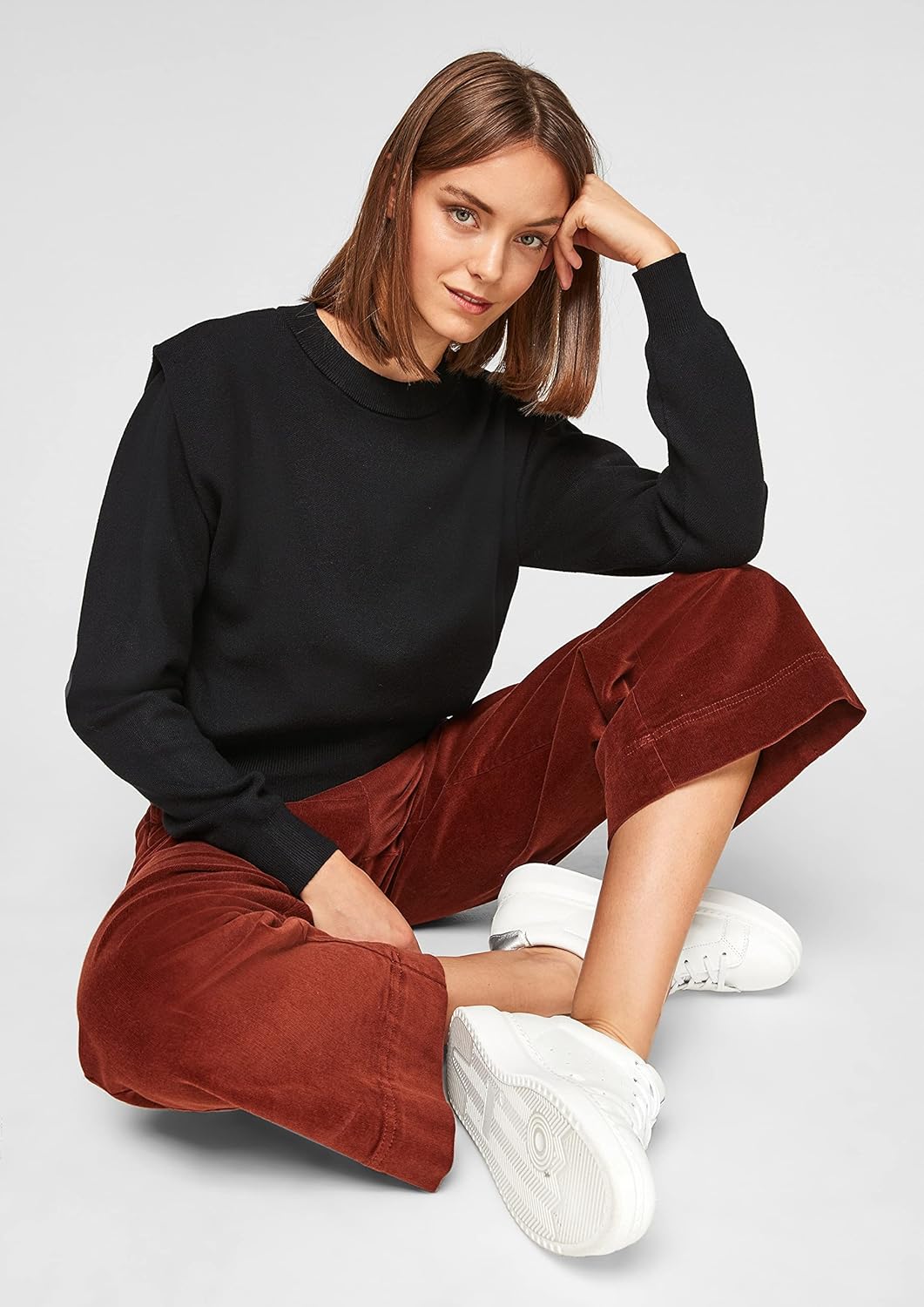 • Ärmel mit Rippbündchen, die Schultern sind überschnitten, die Ärmel sind lang, die Schultern sind verstärkt