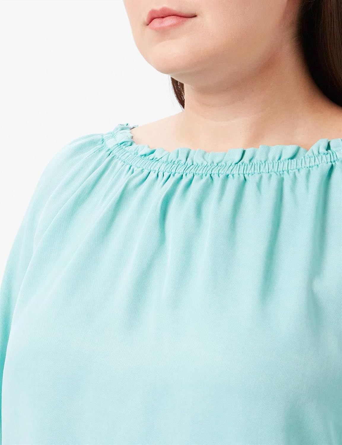 PRODUKTBESCHREIBUNGEN Diese Bluse ist aus weichem Lyocell und wirkt mit den Rüschen topmodisch: wie gemacht für den Alltag. Sie ist mit einem Rundhalsausschnitt versehen. Sie hat Ärmel mit Rüschendetail und Manschetten. Der Saum der Bluse ist abgerundet. Der Regular Fit prägt den Schnitt der Bluse. Die Rückenlänge beträgt 59 cm bei Grösse 36.