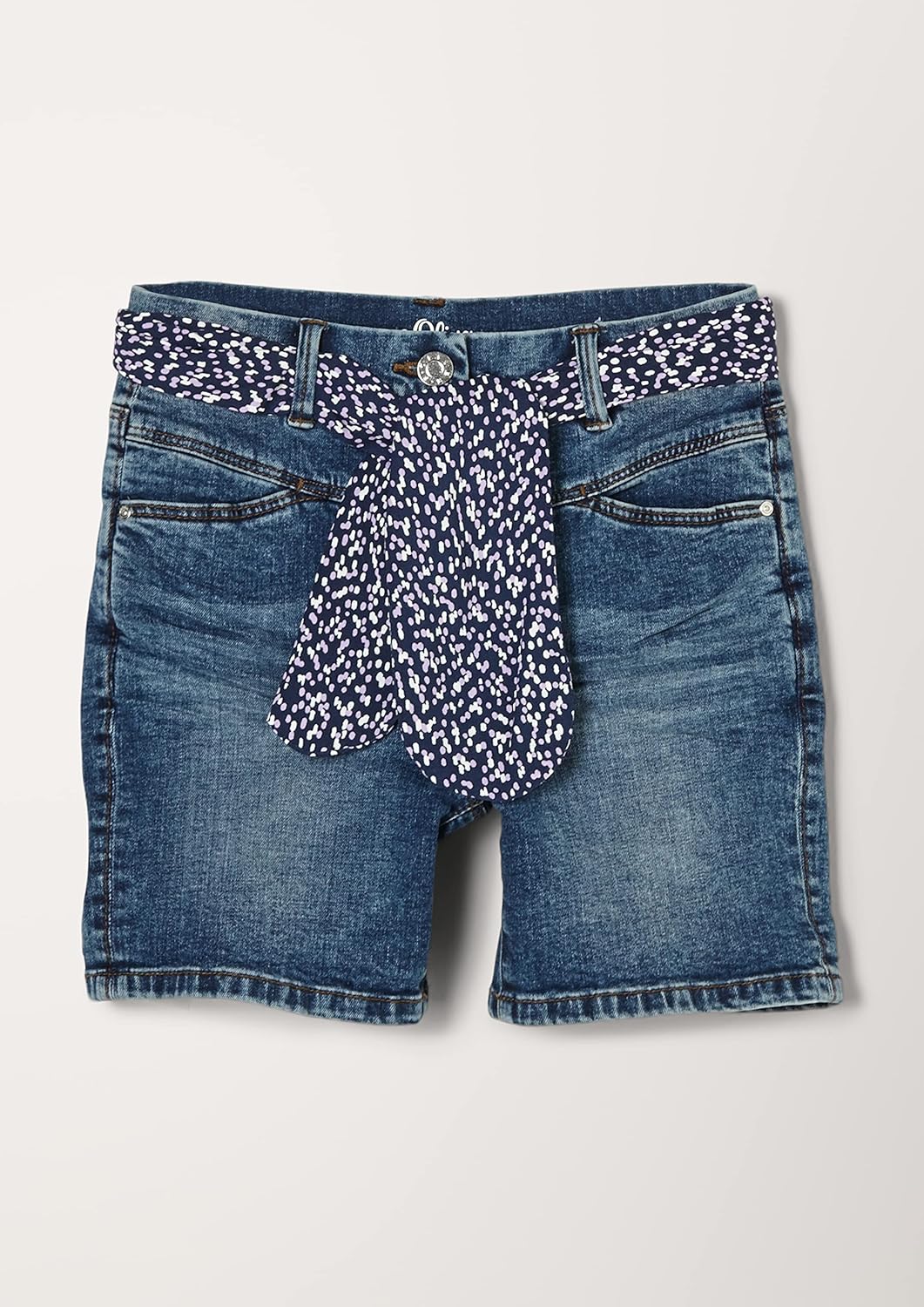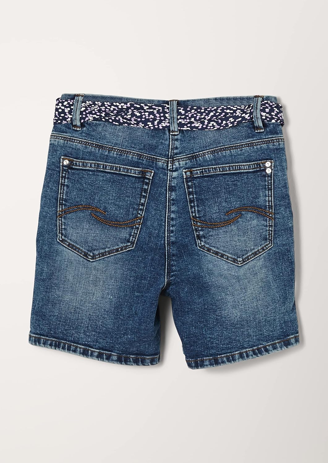 - Oberstoff blau: 98% Baumwolle, 2% Elasthan; Oberstoff grau: 65% Baumwolle, 33% Polyester, 2% Elasthan; Gürtel: 100% Viskose