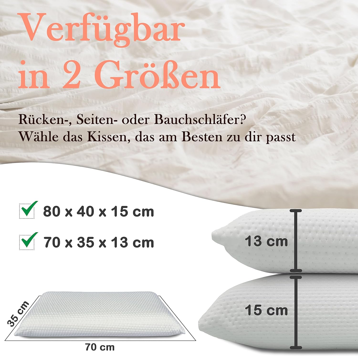- ✅ Wähle die Kissengrösse die am besten zu dir passt. Für Seitenschläfer empfehlen wir die Höhe von 15 cm und für Bauchschläfer die Höhe von 13 cm. Rückenschläfer können die Kissenhöhe nach ihren Individuellen Vorlieben auswählen.