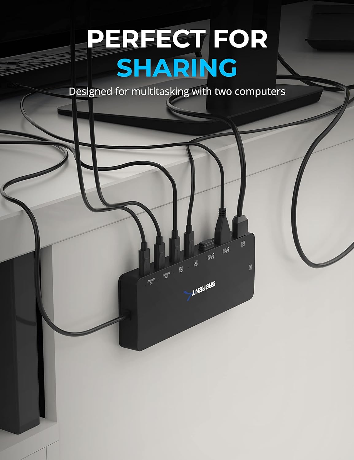 - Steuern Sie zwei Computer oder Geräte mit nur einer Maus und einer Tastatur über zwei USB-A 2.0-Anschlüsse. Ausgabe an einen oder zwei Monitore mit zwei USB-C-Eingängen und zwei HDMI-Ausgängen. Ausserdem können Sie bequem ein oder beide Geräte mit