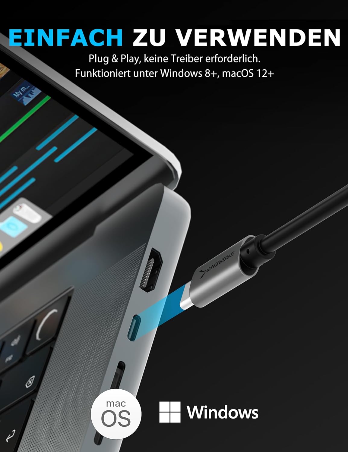 - EINFACHES PLUG & PLAY: keine Treiber notwendig. Busbetriebener Komfort ohne zusätzliche Stromversorgung erforderlich. Funktioniert mit Windows 8+, Mac OS 12+.