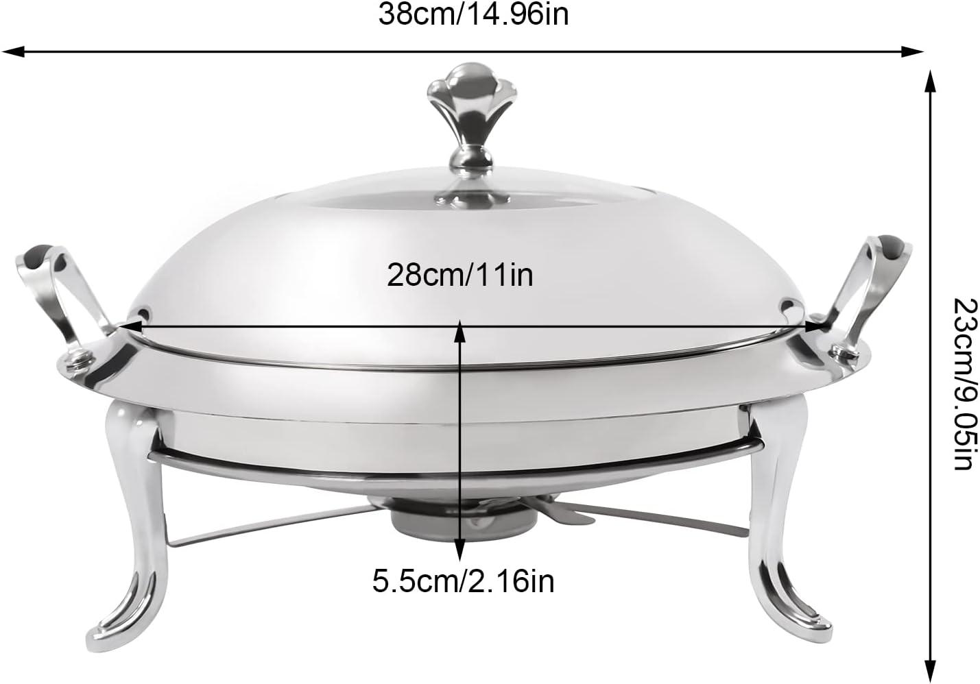 - 【Grosses Fassungsvermögen】Dieser Chafing Dish kann bis zu 3L//3.17Q Lebensmittel auf einmal aufnehmen, was für kommerzielle und häusliche Zwecke gross genug ist.