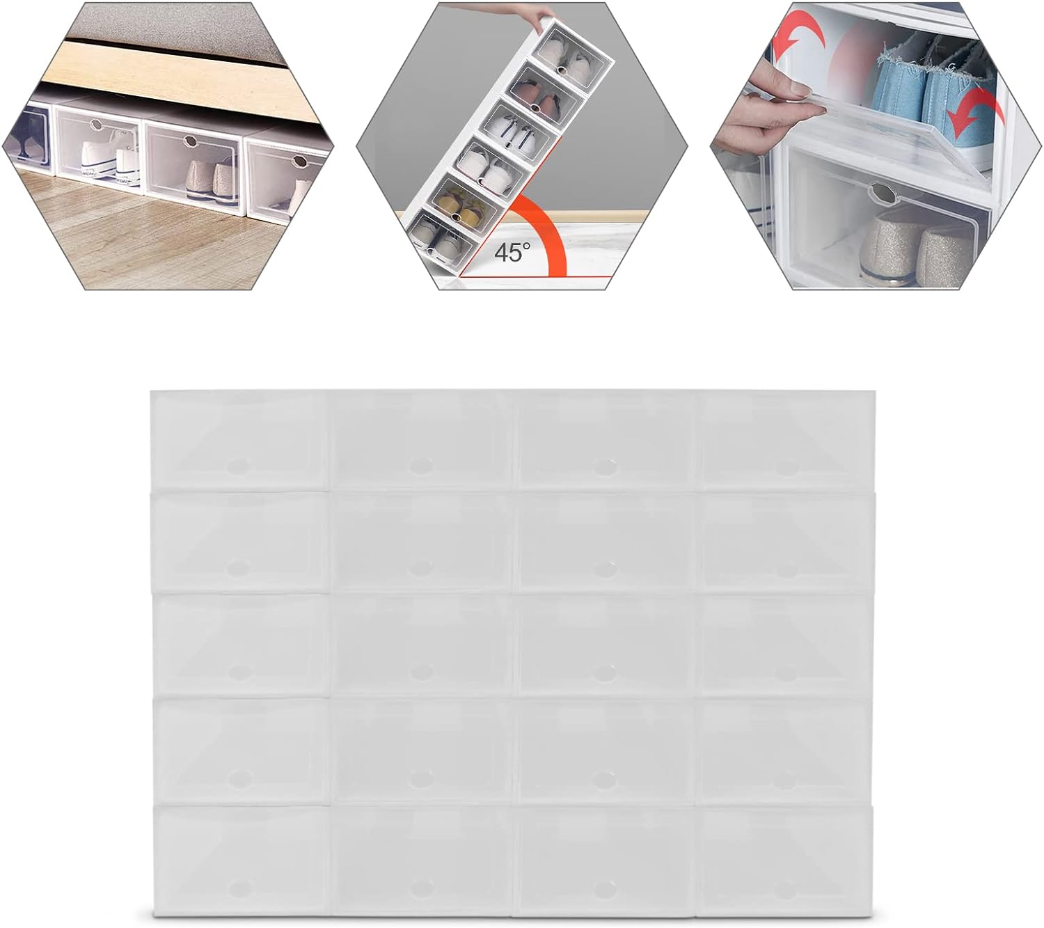 - 【Hohe Lagerkapazität】Die Kombination von 20 Aufbewahrungsboxen kann fast alle Ihre Anforderungen an die Schuhaufbewahrung erfüllen. Sie kann auch eine grosse Anzahl von Kleidungsstücken aufnehmen und entlastet so Ihren Kleiderschrank.