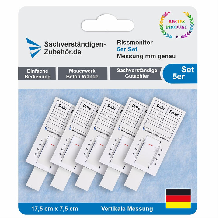 • ✔️ 5ER SET - Das Set besteht aus 5 Stück Rissmonitore von der Marke Sachverständigen-Zubehör.de