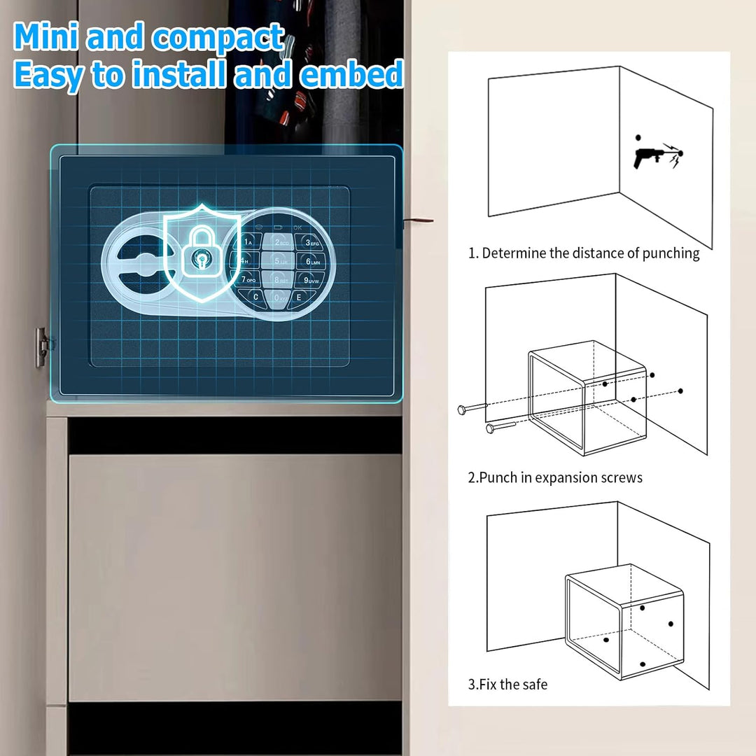 - Einfache Installation: Dank kompakter Grösse und vorgebohrtem Design unterstützt dieser mini tresor die Wand- oder Bodenmontage. Ideal zur Sicherung an verschiedenen Orten wie Schreibtischen und Schränken, verwandelt der Tresor sich in einen diskreten