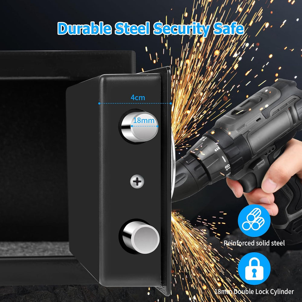 - Hochfester Sicherheitsschutz: Gefertigt aus 2,2 mm massivem Legierungsstahl, kombiniert mit versteckten Scharnieren und einem aufbruchssicheren Türdesign, bildet dieser Safe Tresor Klein eine undurchdringliche Sicherheitsfestung, um sicherzustellen,