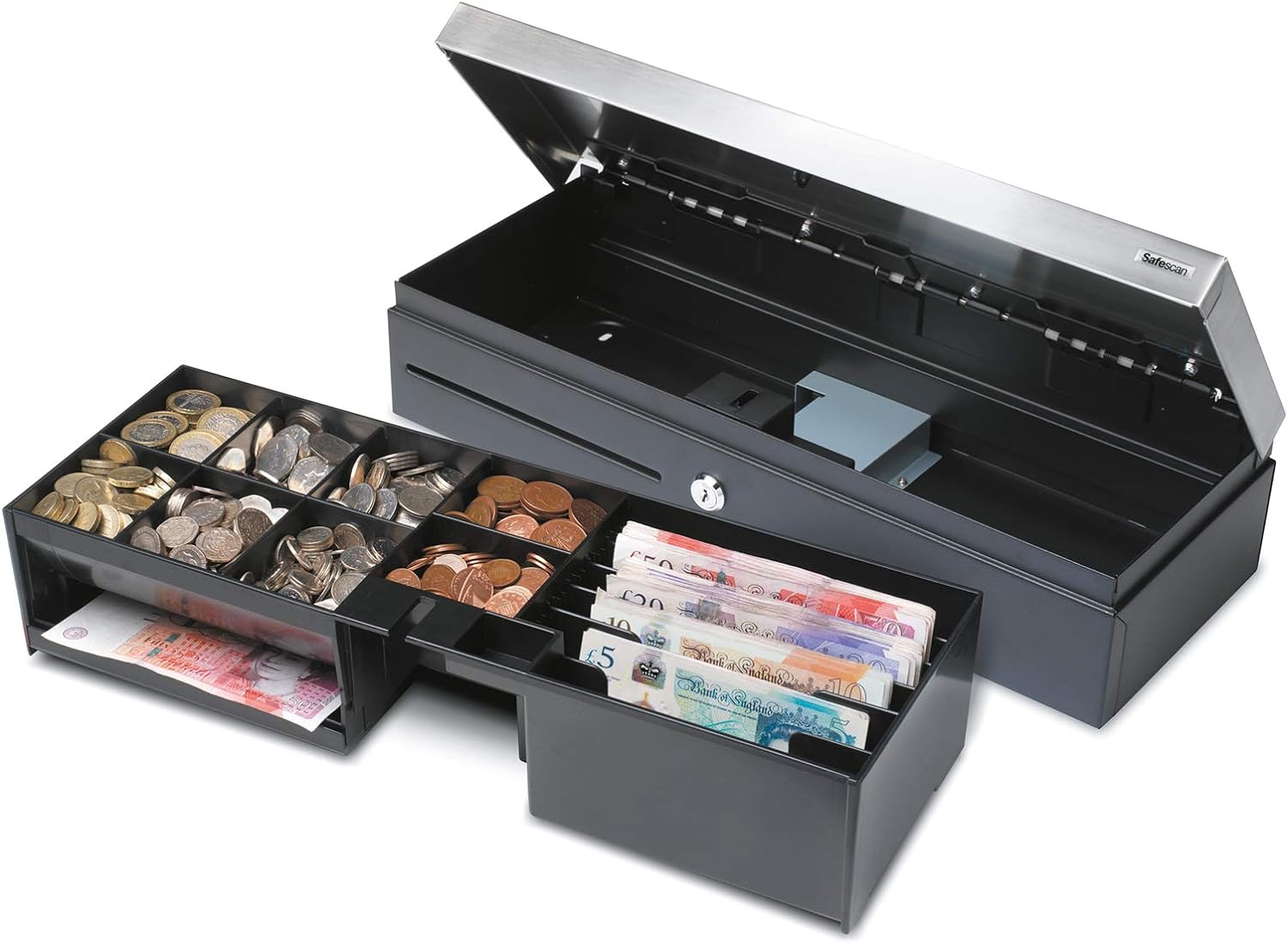- SICHERE AUFBEWAHRUNG: Müssen Sie Ihre Geldeinsätze zwischen den Schichtwechseln aufbewahren? Kein Problem! Verschliessen Sie sie einfach mit dem optionalen Safescan 4617L Deckel: Die robuste Metallkonstruktion und die sichere Verriegelung mit zwei