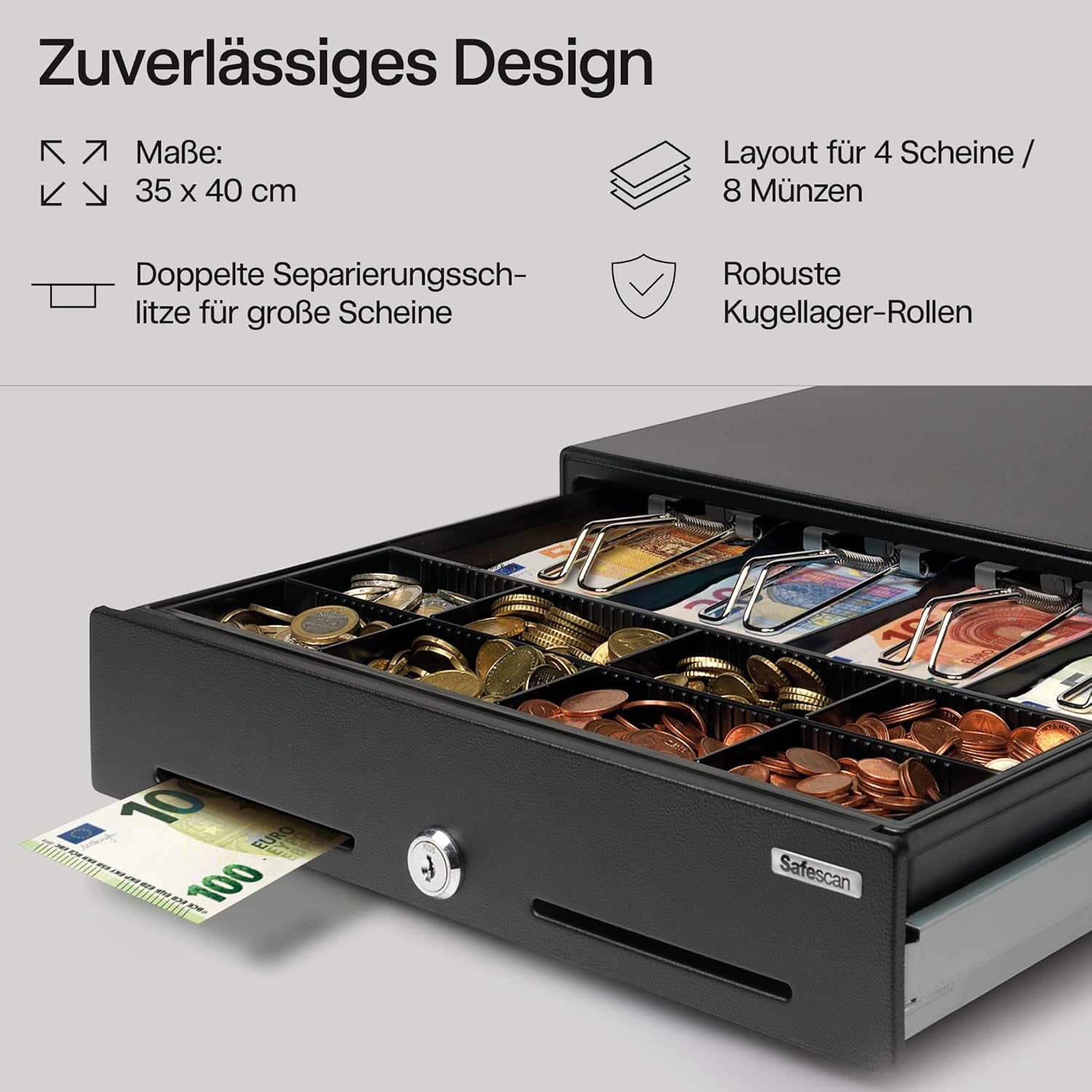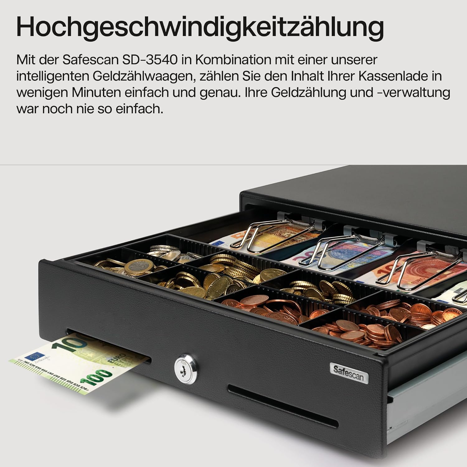 • SICHERE AUFBEWAHRUNG VON BARGELD: Optimieren Sie Ihre Bargeldtransaktionen den ganzen Tag lang: Die Safescan SD-3540 ist die perfekte Kassenschublade, wenn Sie Ihr Bargeld den ganzen Tag über sicher aufbewahren müssen; So können Sie sich voll und ganz