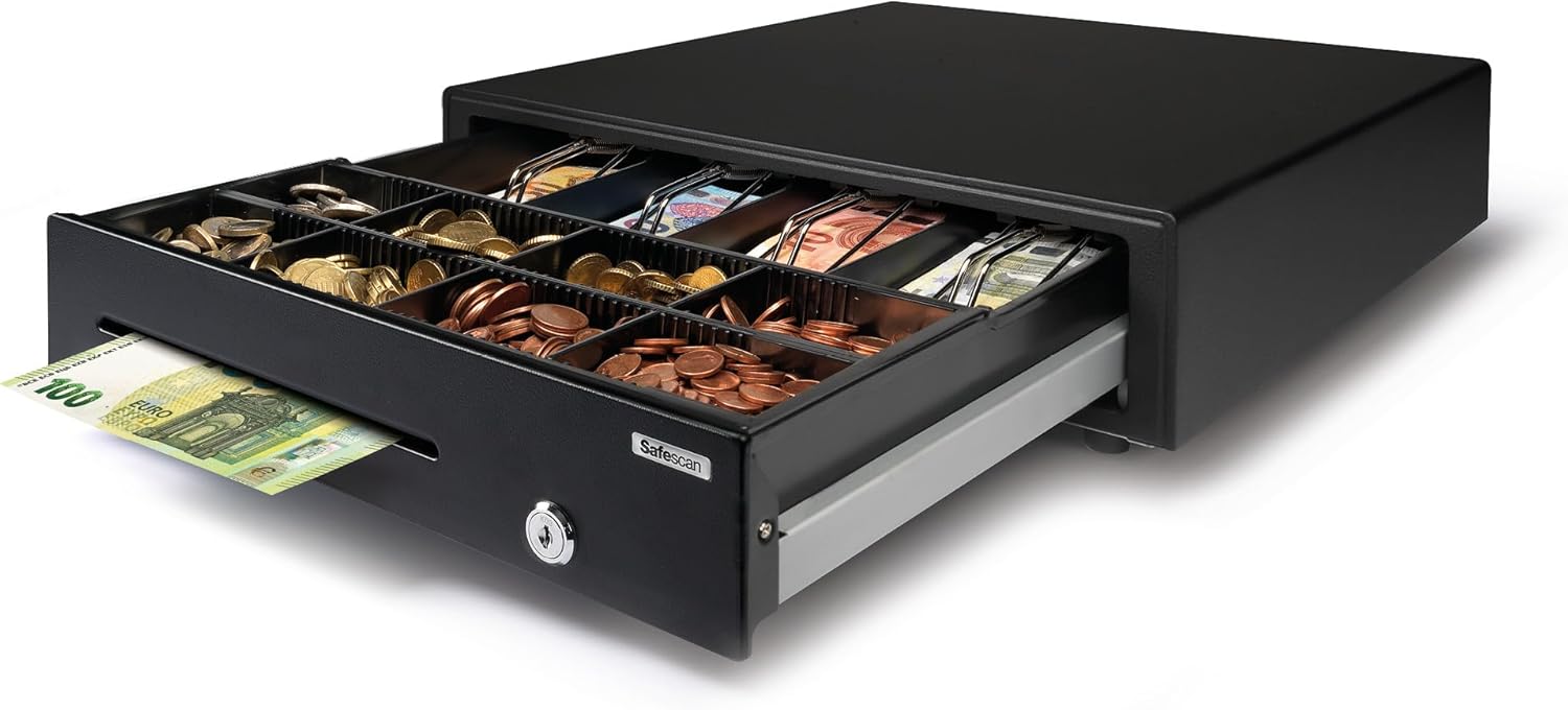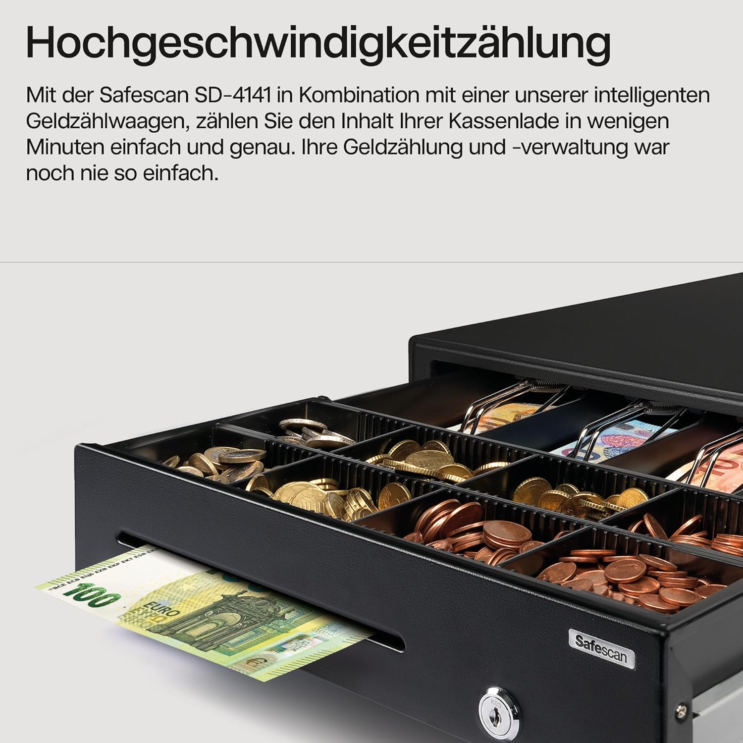 - SICHERE AUFBEWAHRUNG VON BARGELD: Optimieren Sie Ihre Bargeldtransaktionen den ganzen Tag lang: Die Safescan SD-4141 ist die perfekte Kassenschublade, wenn Sie Ihr Bargeld den ganzen Tag über sicher aufbewahren müssen: So können Sie sich voll und ganz