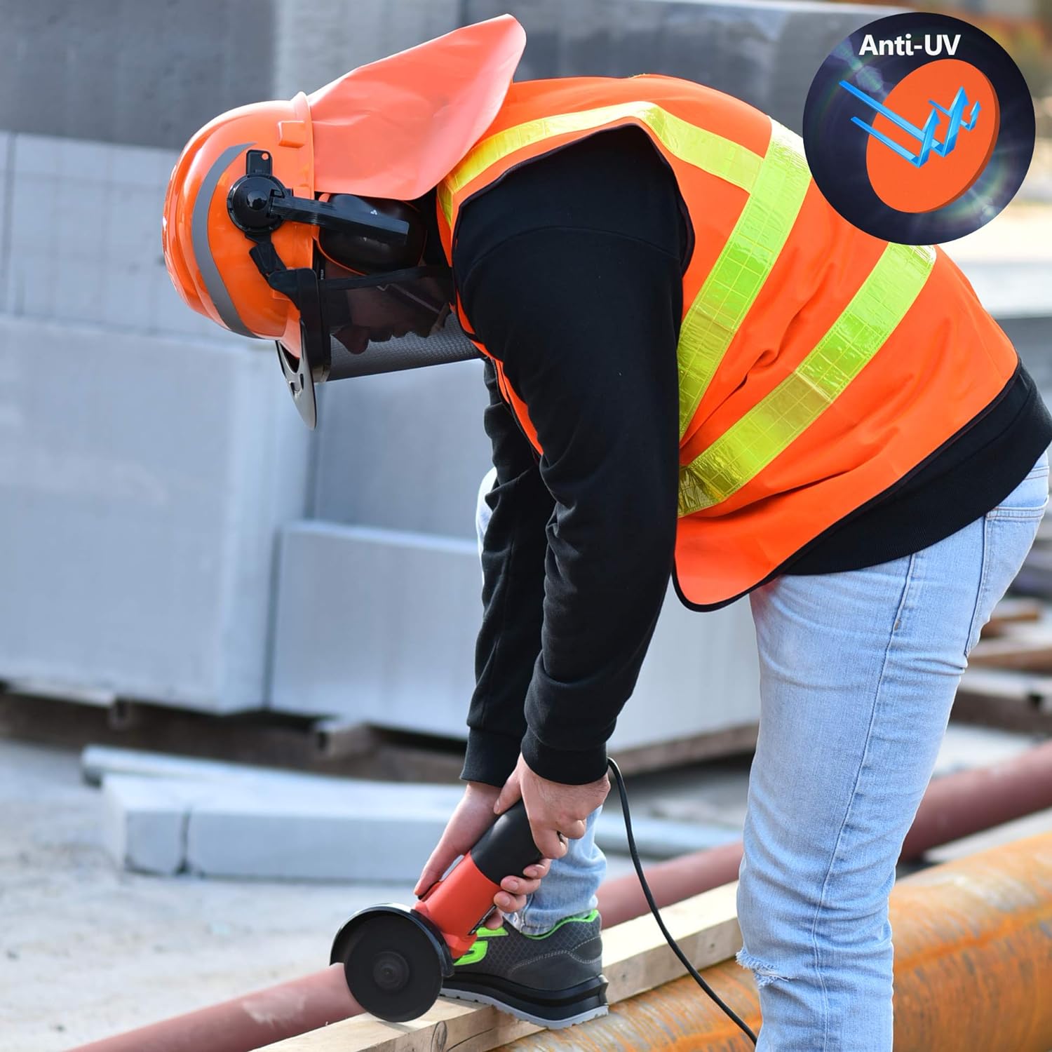 - ♧ 【Reflektierende Sicherheit】 5 Reflektierende Streifen des Chainsaw Forestry-Helms, die Sie an dunklen Arbeitsplätzen sichtbar halten. Das einzigartige reflektierende Design und die Verwendung von ABS-Material bieten doppelten Schutz für Ihren