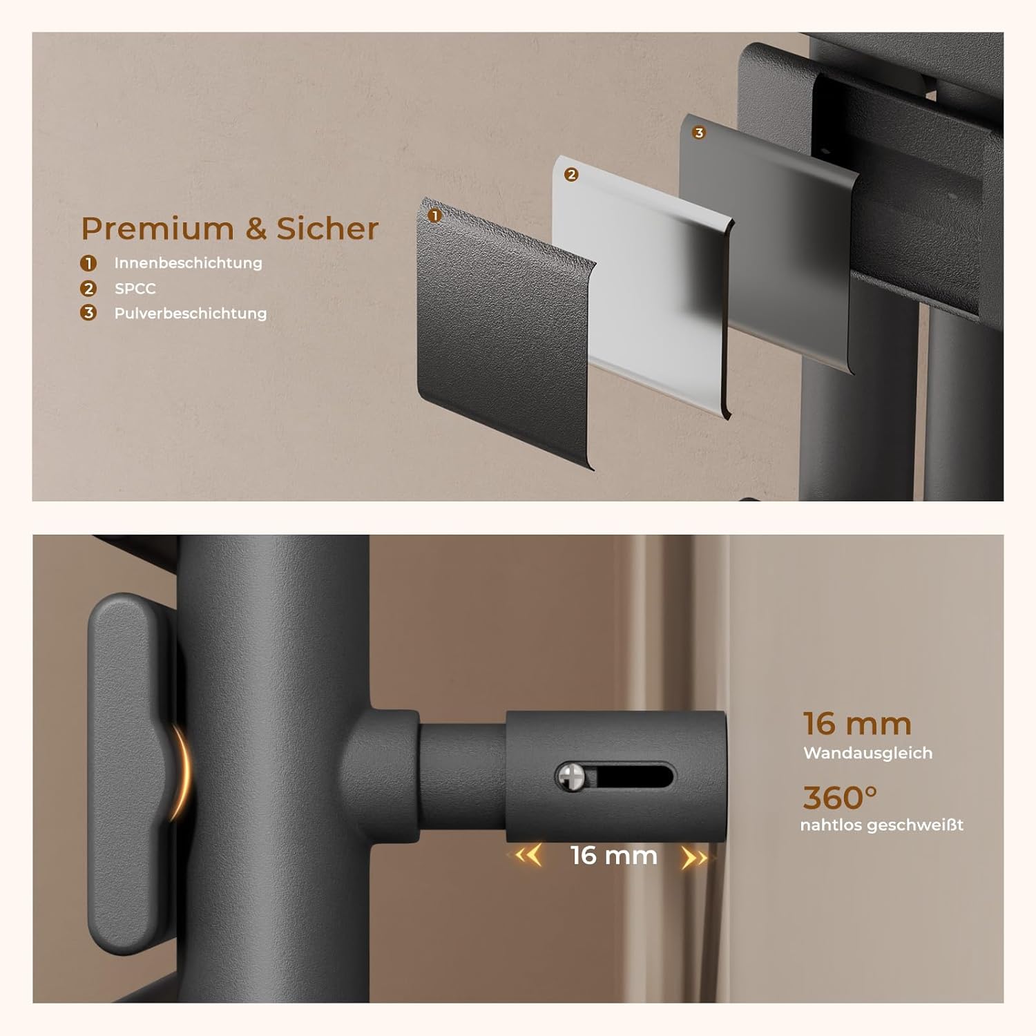 - 【Robust und langlebig】 Aus Q195 Niedrigkohlenstoffstahl, verschweisst und korrosionsgeschützt, ist der handtuchwärmer elektrisch stabil und rostfrei. Mit IP44 bleibt der elektro Handtuchheizkörper auch in Feuchtigkeit sicher und zeigt die hohe