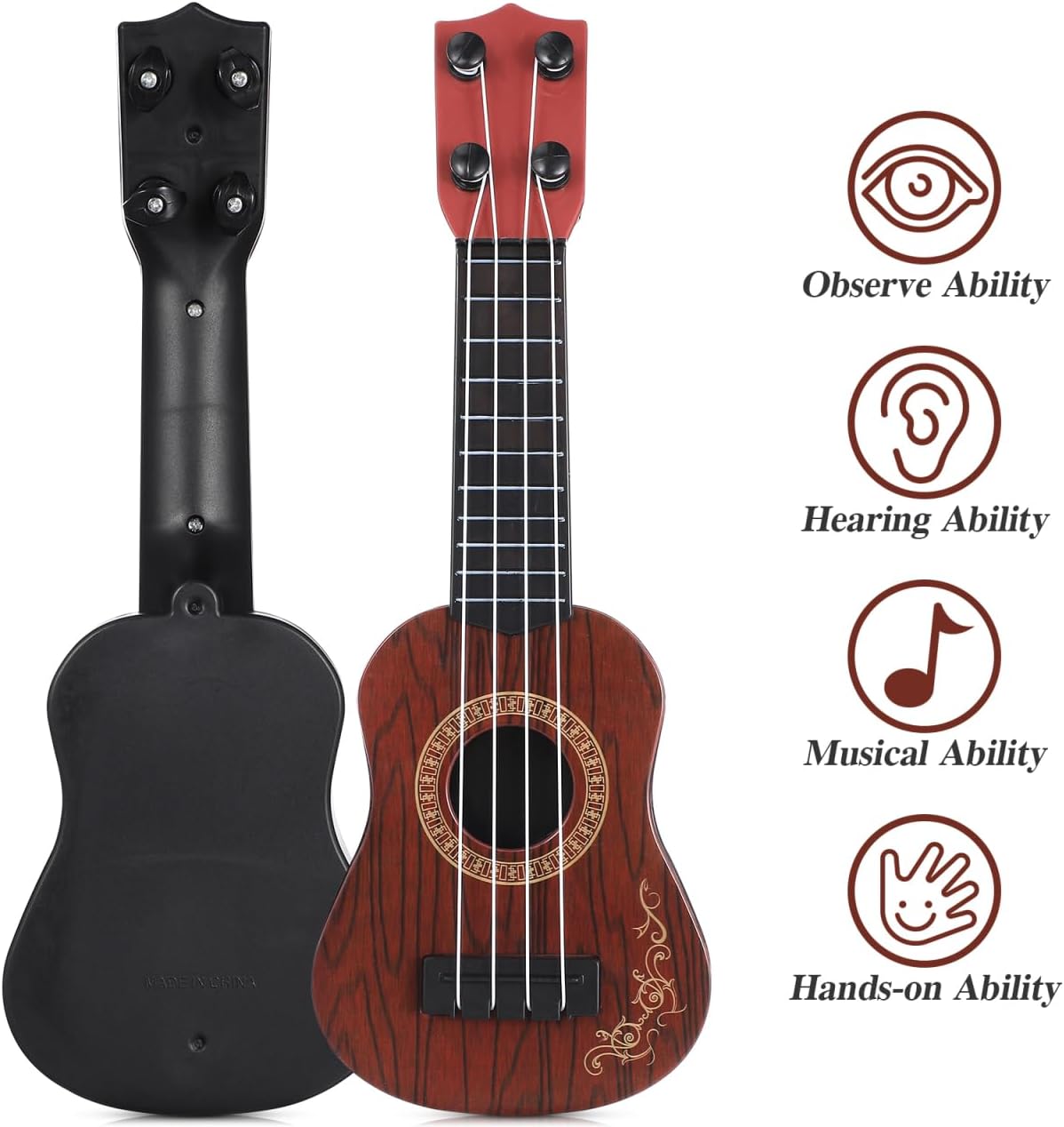 - Exquisites Spielzeuggitarre:Der von der Spielzeuggitarre erzeugte Klang ist lebendig und angenehm, und die Saiten fühlen sich realistisch an, sodass Kinder den Spass am Spielen eines Instruments erleben und gleichzeitig Musik geniessen können