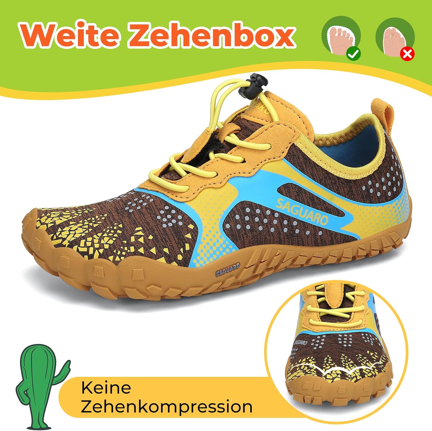 - Verbesserte Zehenkonstruktion: Die verbesserte Zehenkonstruktion des Kinder Barfussschuhe passt sich der form der zehen an und bietet genügend platz, um die zehen beim laufen vor verletzungen zu schützen