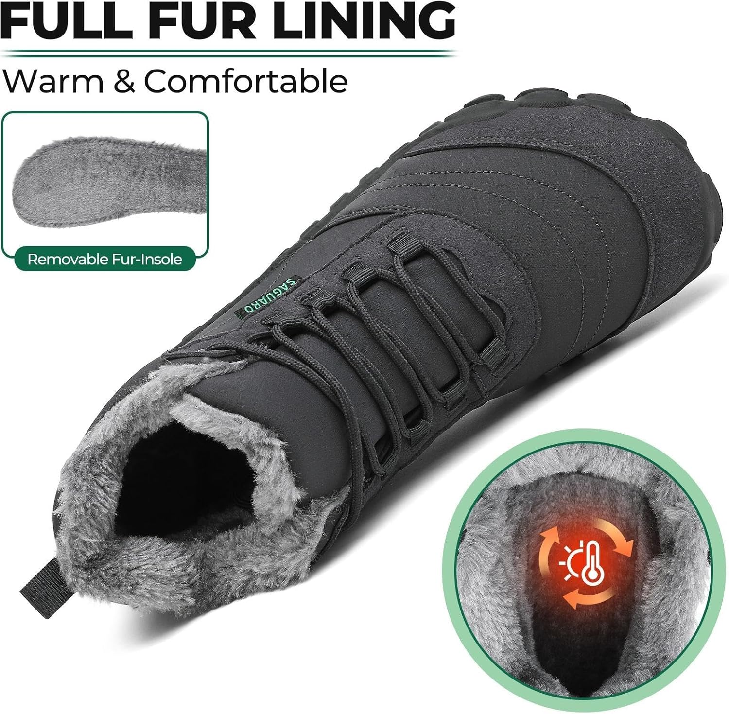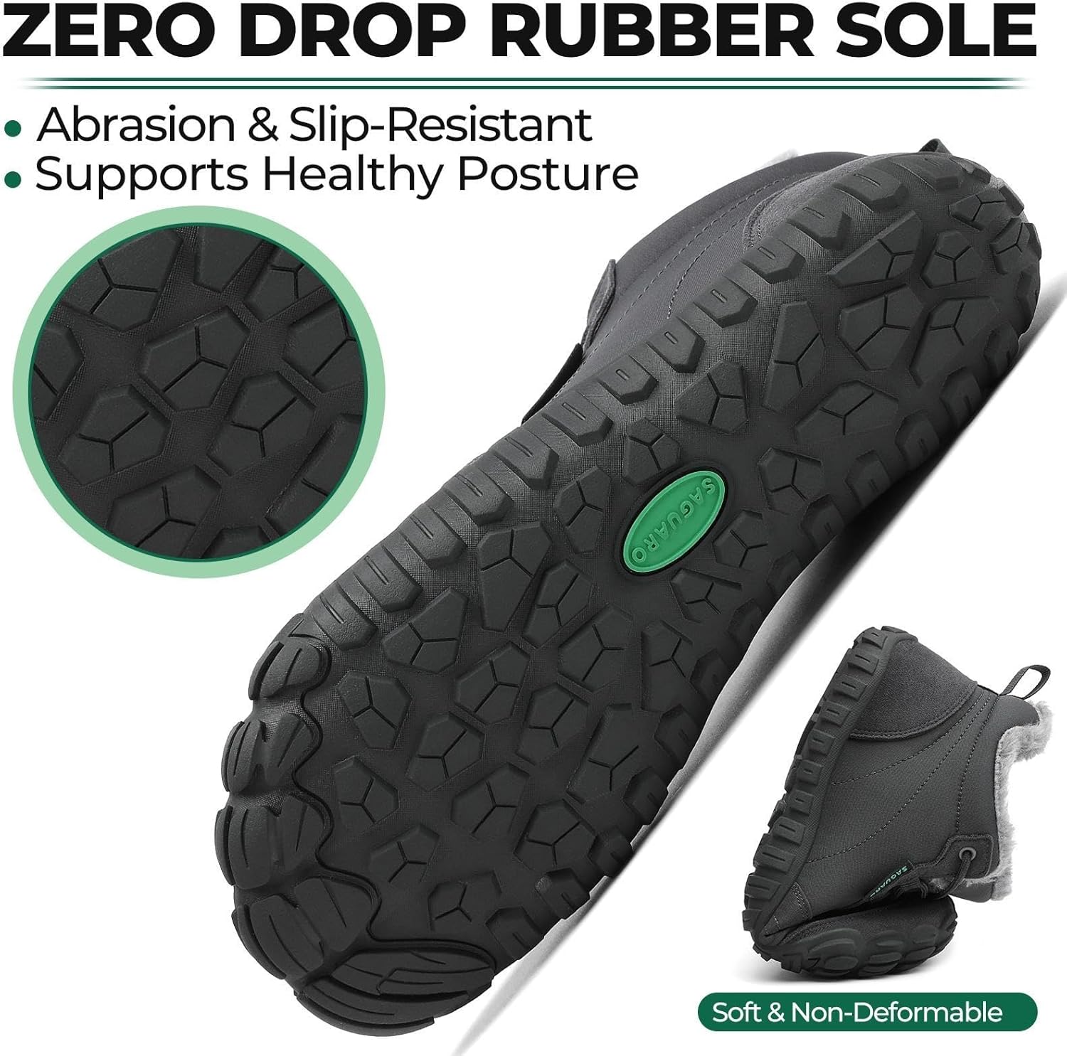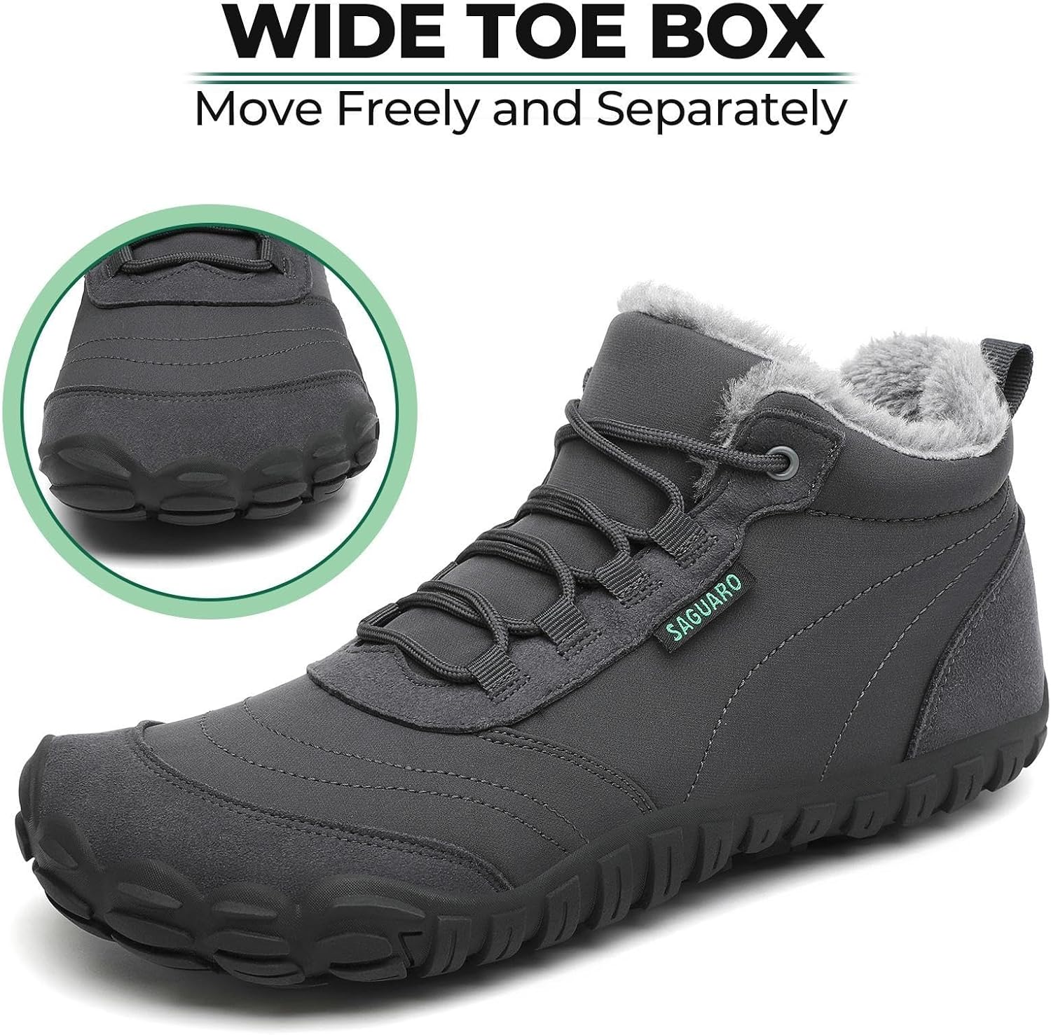 - Breite und Komfort Zehe: Das breite Zehendesign der SAGUARO Barfuss Winterschuhe bietet ausreichend Platz für jeden Zeh, passt die Fusshaltung effektiv an, bietet Unterstützung und erhöht das Fusssohlengefühl, was perfekt mit dem Vorteil von "Die 5
