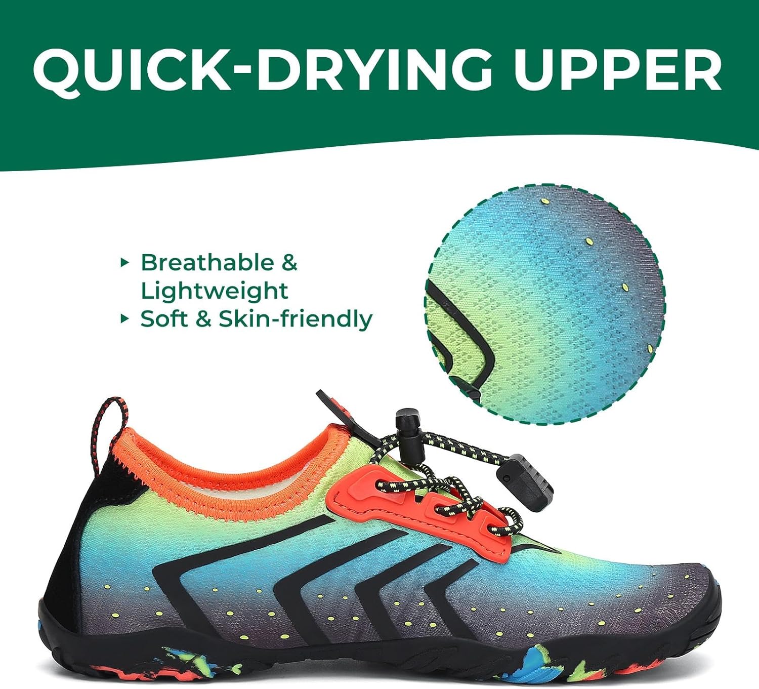• Schnell Trocknend & Atmungsaktiv: Die Wasserschuhe Kinder sind aus leichtem, elastischem und atmungsaktivem Material gefertigt, schnell trocknend und atmungsaktiv, sorgt dafür, dass die Füsse Ihres Kindes immer trocken und bequem sind.