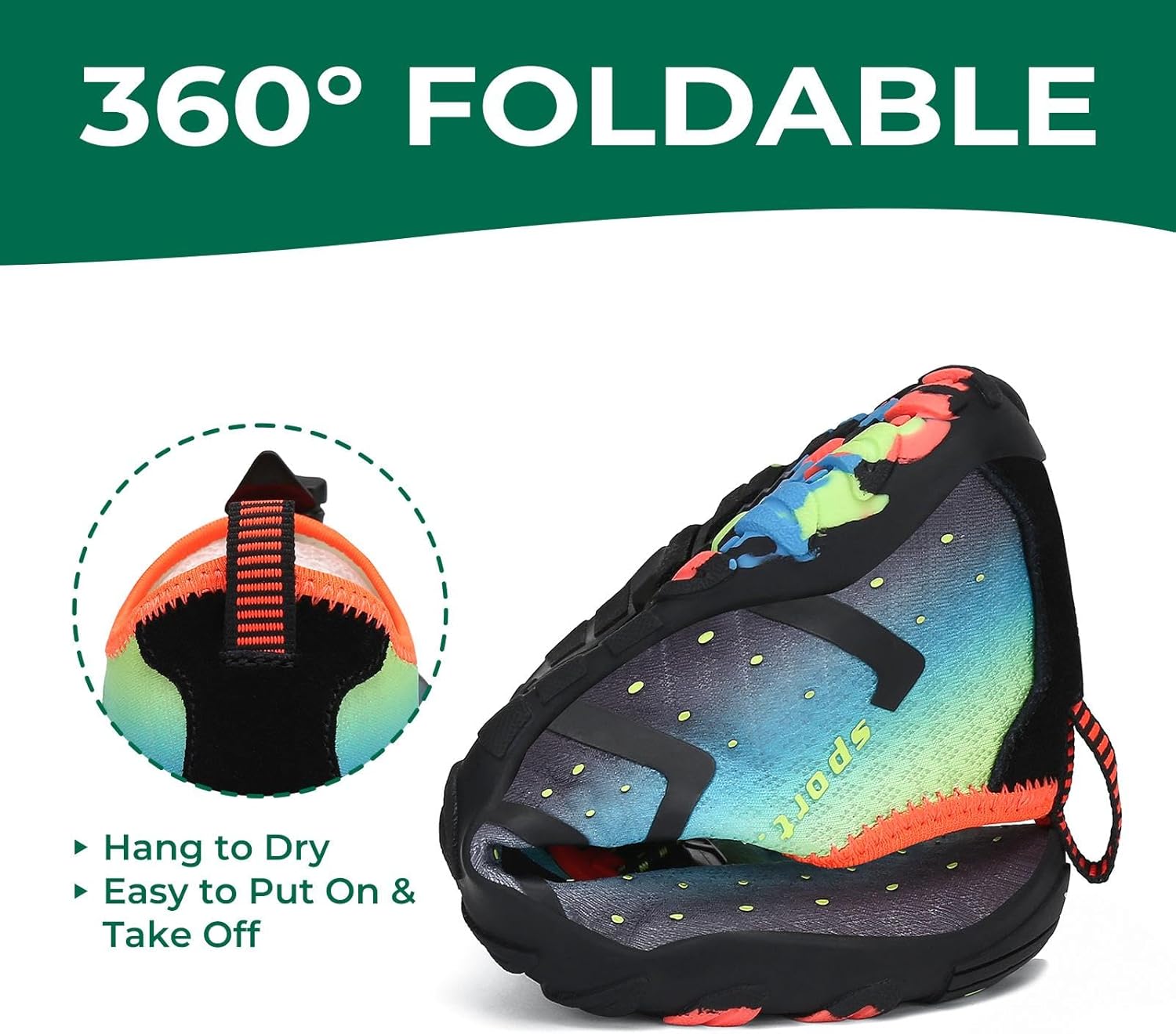 • Weich & Faltbar: Die Kinder Badeschuhe können um 360° gefaltet werden, nicht leicht verformt werden, können in kleine Stücke gefaltet werden, leicht zu tragen.