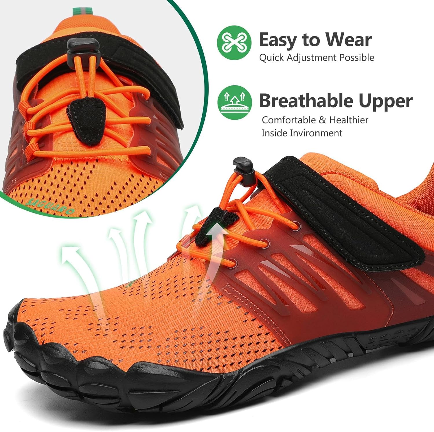 PRODUKTBESCHREIBUNGEN ✔ Unser Barfussschuh ermöglicht es Ihrem Fuss zu bewegen, als ob Sie überhaupt keinen Schuh tragen oder so nah wie möglich an diesem Schuh. Verbessern Sie Ihre Fünf-Finger-Schuhe, dieser Barfuss-Trainingsschuh mit einer breiten Zehenbox, damit Ihre Zehen sich entspannen und natürlich gedeihen können. ✔ Durch das Tragen dieser Barfussfüsse werden Sie Ihre Füsse mehr eingreifen und die Muskelfasern stärken, die beim Schnüren vernachlässigt werden. Mit stärkeren Muskelaufsätzen im Fuss erwartet man die Verletzungsrate und die Effizienz des Laufens zu verbessern.