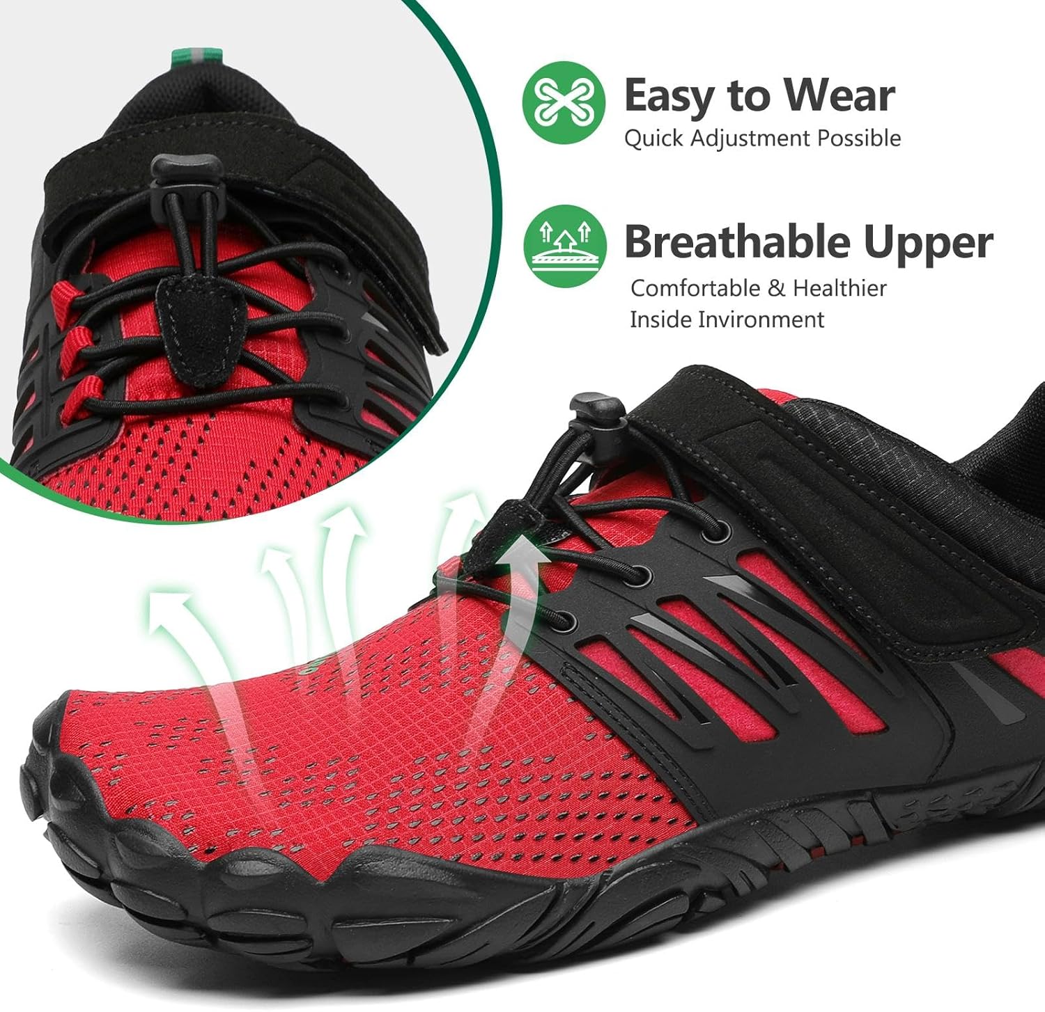 PRODUKTBESCHREIBUNGEN ✔ Unser Barfussschuh ermöglicht es Ihrem Fuss zu bewegen, als ob Sie überhaupt keinen Schuh tragen oder so nah wie möglich an diesem Schuh. Verbessern Sie Ihre Fünf-Finger-Schuhe, dieser Barfuss-Trainingsschuh mit einer breiten Zehenbox, damit Ihre Zehen sich entspannen und natürlich gedeihen können. ✔ Durch das Tragen dieser Barfussfüsse werden Sie Ihre Füsse mehr eingreifen und die Muskelfasern stärken, die beim Schnüren vernachlässigt werden. Mit stärkeren Muskelaufsätzen im Fuss erwartet man die Verletzungsrate und die Effizienz des Laufens zu verbessern.