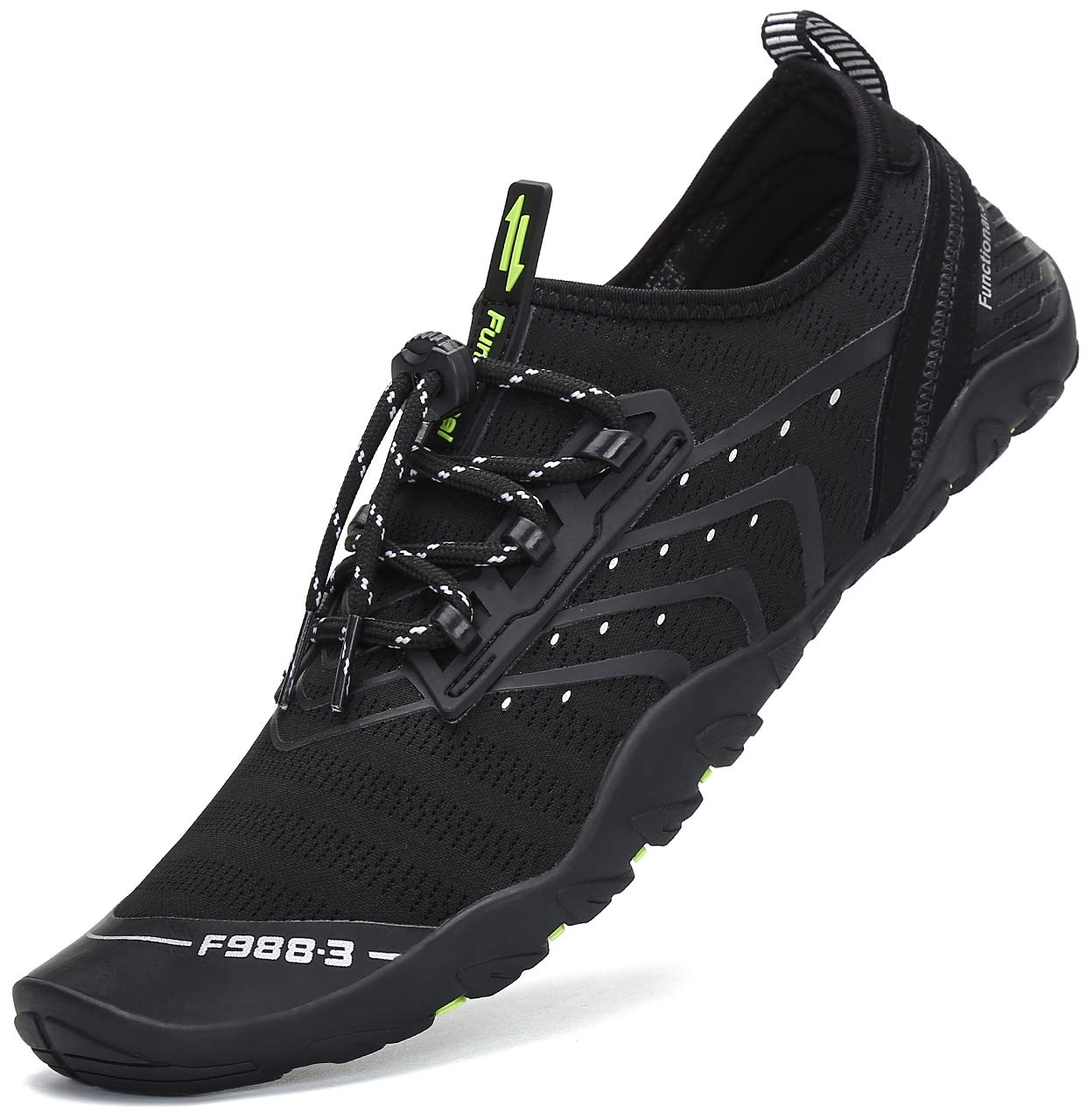 - Herausnehmbare weiche Einlegesohlen und die Drainagelöcher an der Unterseite der Sohlen lassen Wasser sehr schnell durchdringen und trocknen