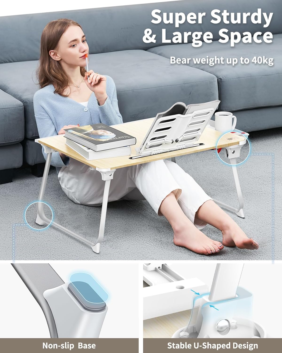 SAIJI Laptop Tablett Bett Tisch, Sstabil XXL klappbar Tisch, für Boden Sofa Essen Arbeiten Spielen L