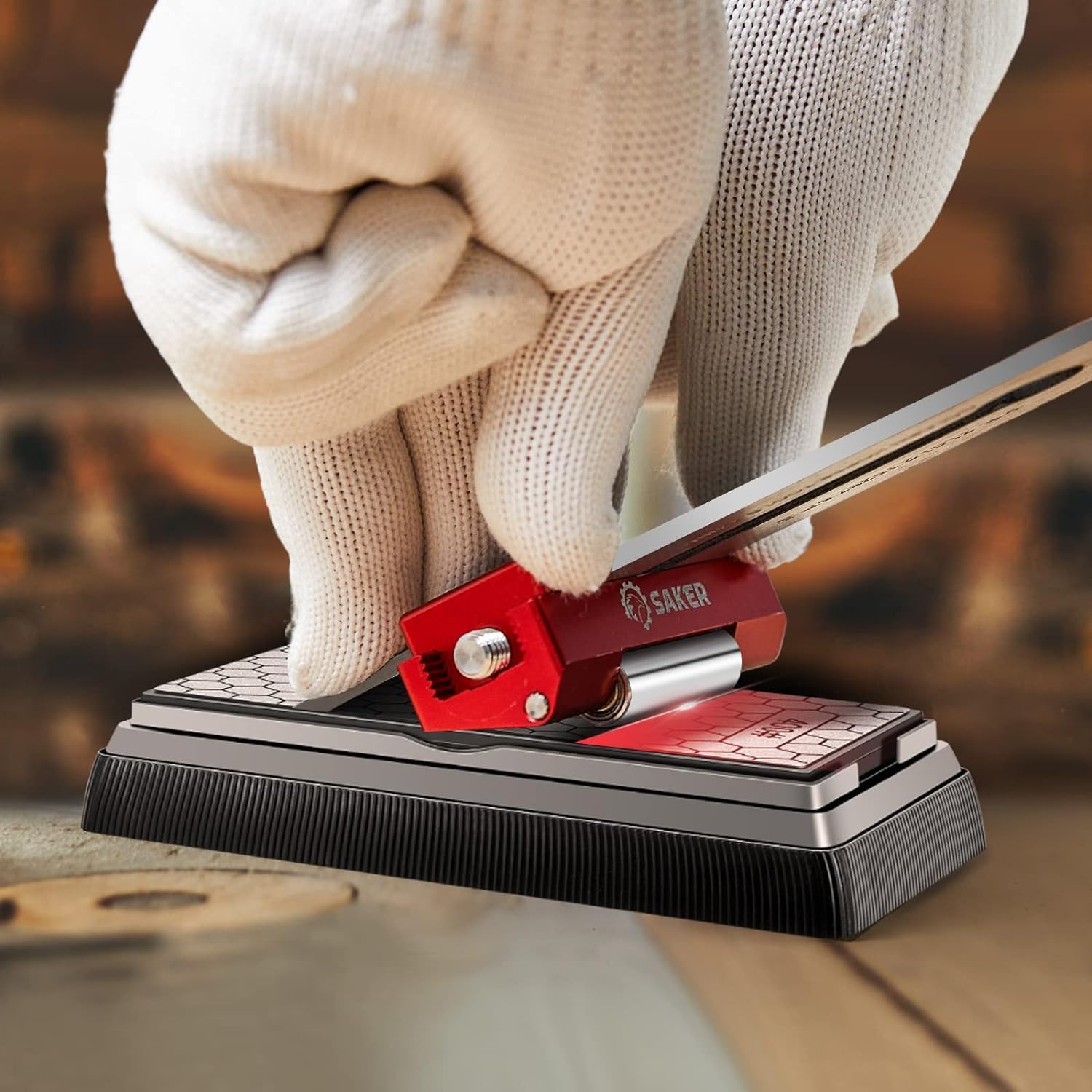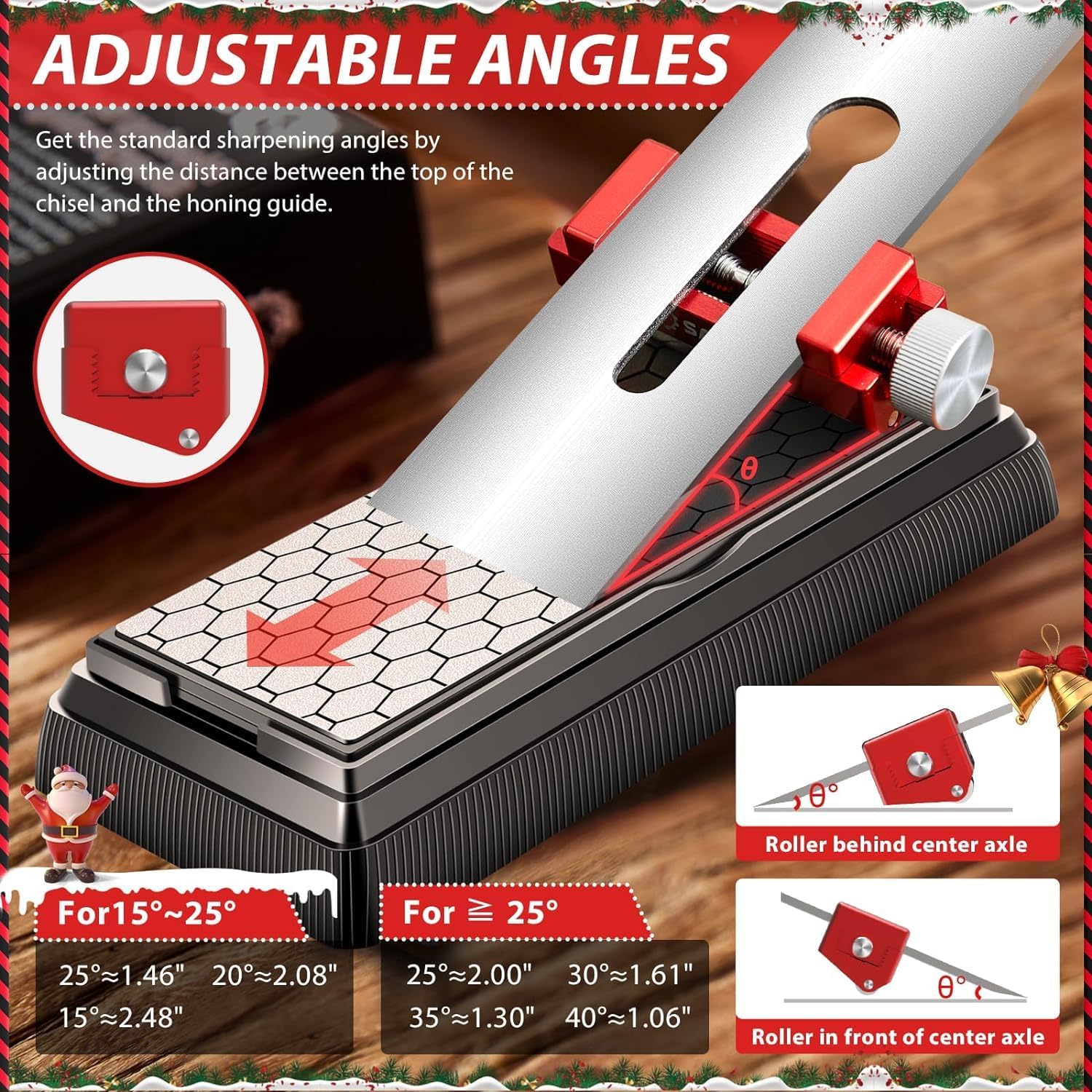 - Neues Winkelfixierwerkzeug - Diese Abziehführung kann den Winkel, in dem die Meisselkante auf den Schleifstein trifft, sichern und feineinstellen, so dass die gesamte Messerkante gleichmässig geschärft werden kann.