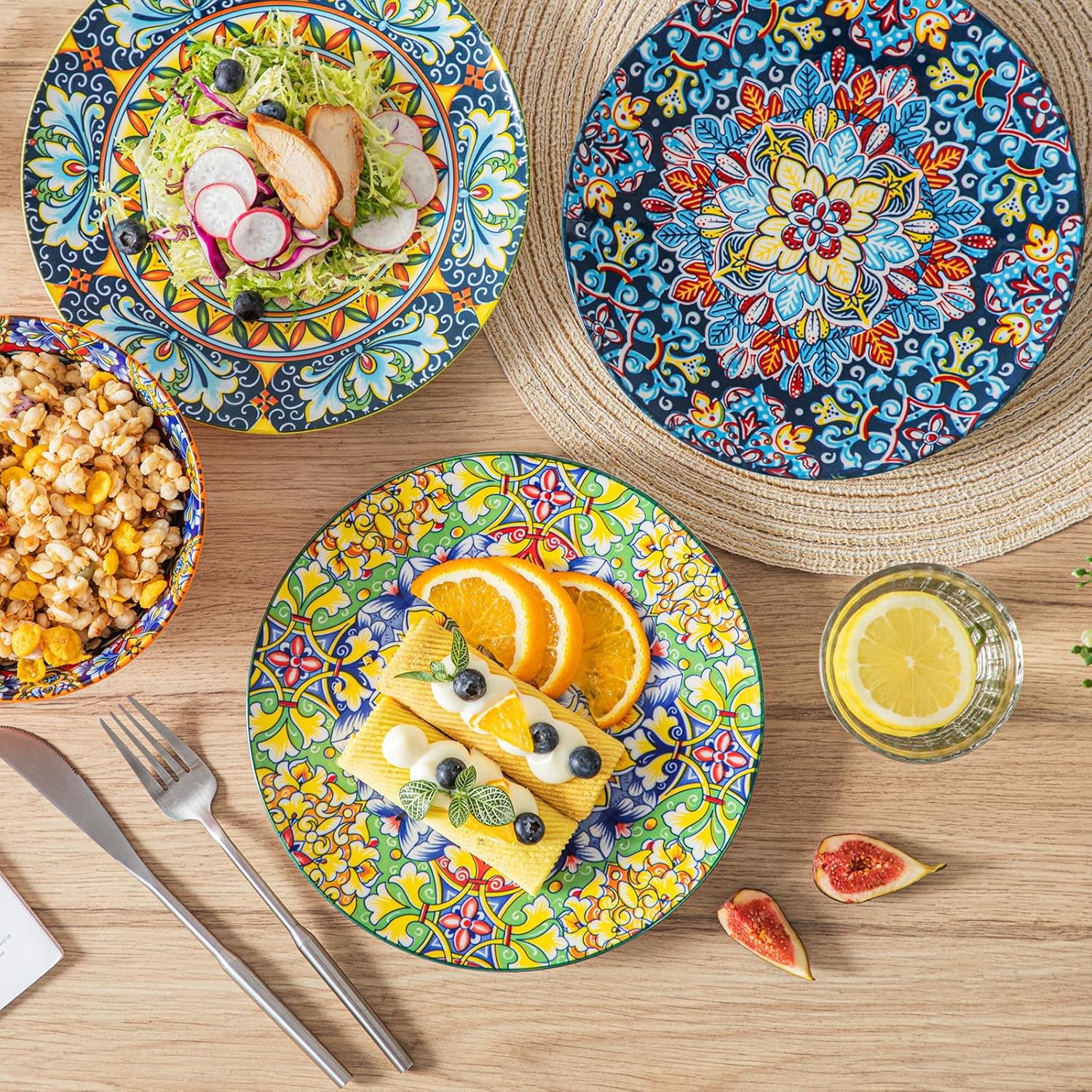- 【Lebendige und farbenfrohe Designs】: Vancasso böhmischen Stil Speiseteller Dessertteller verfügen über bezaubernde und komplizierte Designs, die die freigeistige Essenz der böhmischen Kultur einzufangen.Die lebendigen Farben und künstlerischen