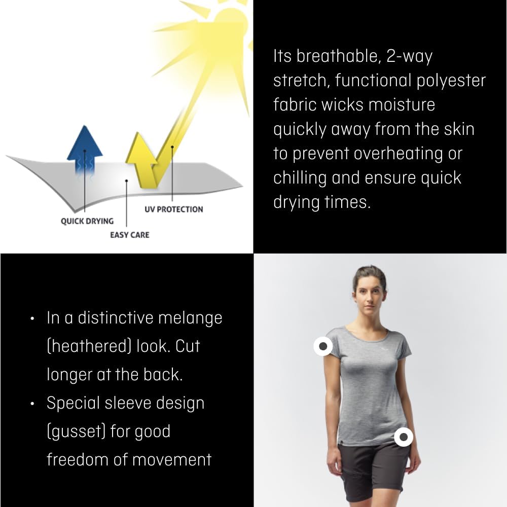 • Technisches kurzärmeliges Damen-Shirt aus Dry'Ton für Bergwanderungen an heissen Tagen.