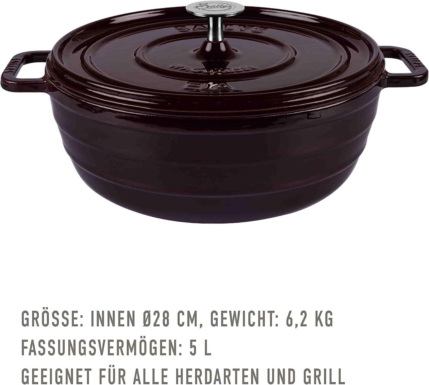 - 📏 Grosszügige Grösse: Mit einem Innendurchmesser von 28 cm, einer Innenhöhe von 10 cm und einem Fassungsvermögen von 5 Litern bietet der Topf ausreichend Platz für die Zubereitung verschiedenster Gerichte.