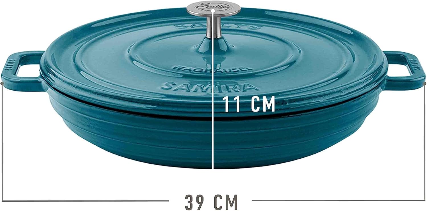 • 🔹 Vielseitige Verwendung: Der Gusseisentopf eignet sich für flache Gerichte wie Lasagne, Ofengemüse, Fleischgerichte und grosse Braten.