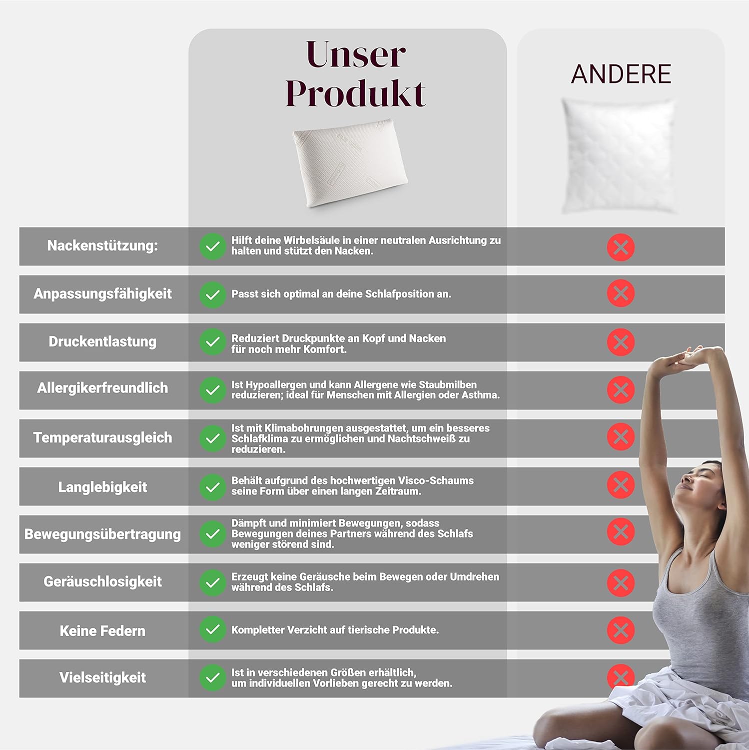 • ✓ Vielseitig und anpassungsfähig: Das Viscokissen ist für Rückenschläfer und Seitenschläfer gleichermassen geeignet und kann sowohl als Fernsehkissen oder Schlafkissen verwendet werden. Es bietet eine effektive Nackenstützung und hilft, Nacken-