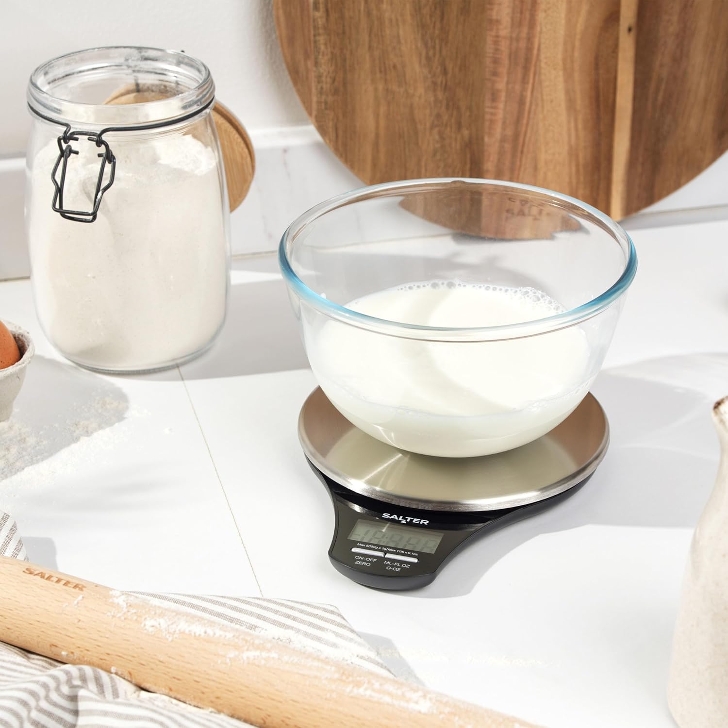 - TARAFUNKTION: Stellen Sie die Waage auf Null, um mehrere Zutaten in derselben Schüssel zu wiegen.