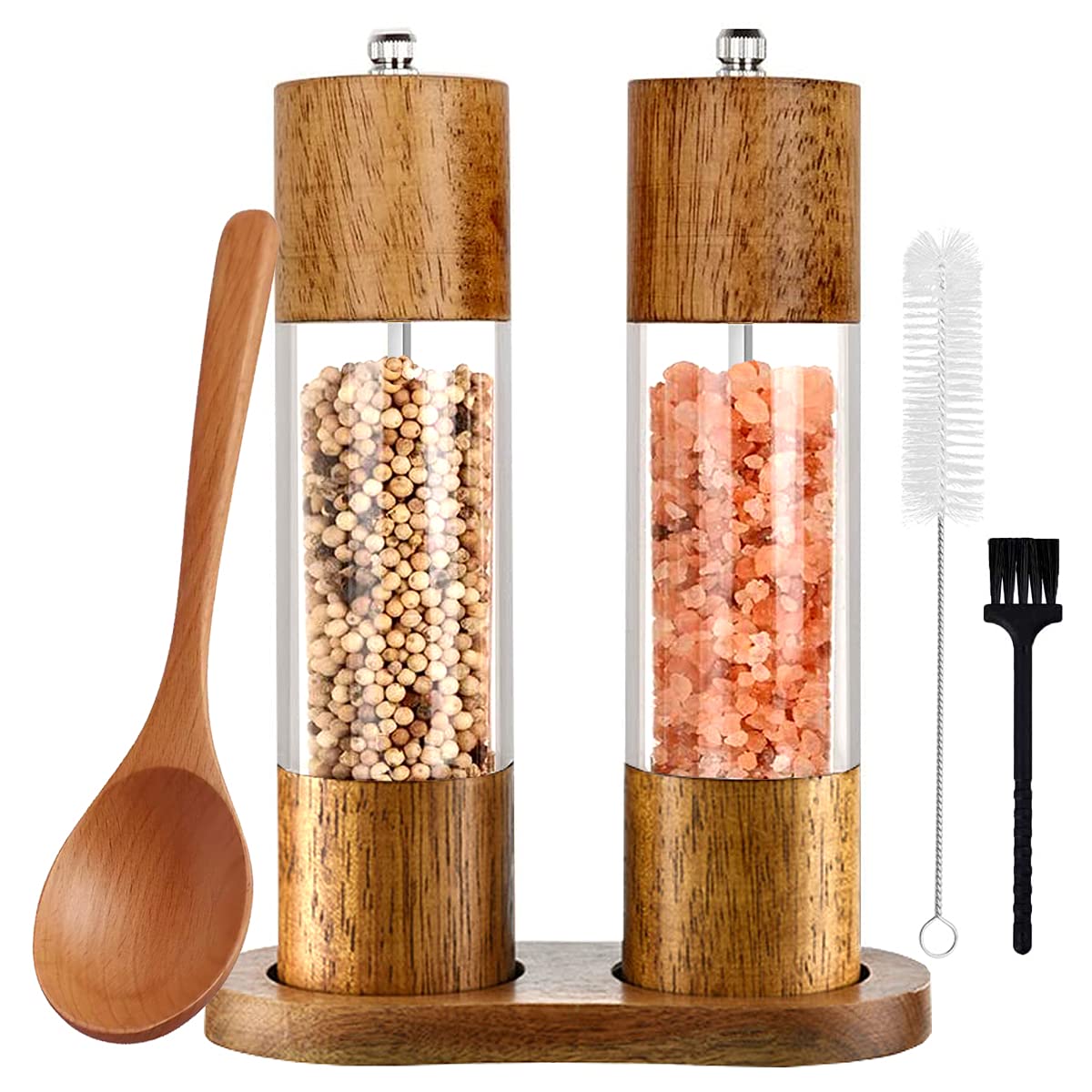 - 【Hochwertiger Manual Pfeffermühle】Das Salz und Pfeffermühle Set besteht aus Gummi holz und Acrylglas, und Mahlmechanismus aus Edelstahl spacer und Keramik, der nicht korrodiert und den Geschmack von Lebensmitteln nicht absorbiert. Standfestigkeit,