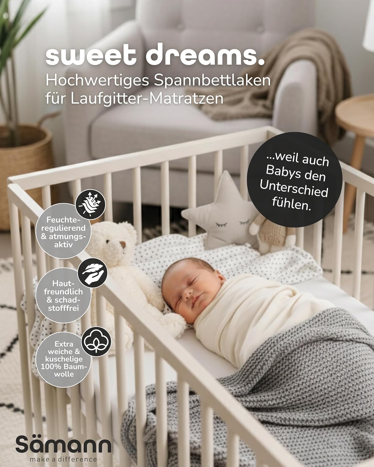 - Hautfreundlich: Der anschmiegsamen Jersey Oberstoff macht das Laken besonders hautfreundlich und kuschelig und gibt deinem Baby dieses Gefühl, als wenn man frischgeduscht in ein frischbezogenes Bett steigt - Gänsehaut!