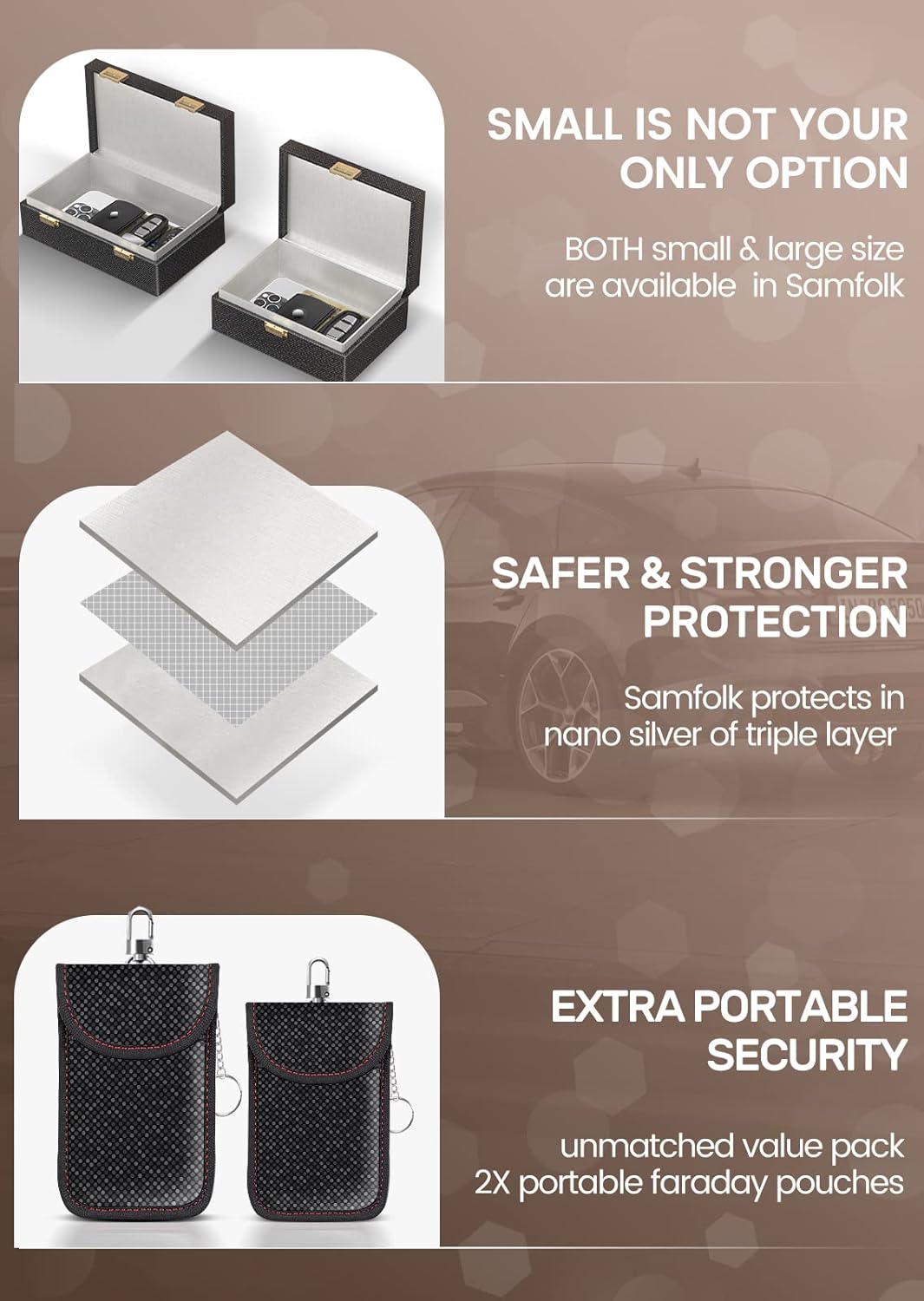 - Ultimativer drahtloser Schutz -- Samfolk Faraday-Box schirmt Autoschlüsselanhänger, Kreditkarten, Handys, GPS-Geräte, Sender oder andere elektronische Geräte ähnlicher Grösse vor allen drahtlosen Signalen ab, einschliesslich RFID, WiFi,